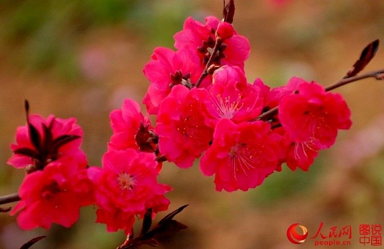 缭炉香,舒翠袖,红粉绛云树。分外夭夭,脂透染莹露。倚楼两岸凝眸,一江春色,偎烟柳,晓岚深处。 暖芳度,何处飞出新声,清泉润琴柱。宛转莺歌,吹梦燕双舞。月移疏影村头,竹敲风韵,映人面,玉帘朱户。