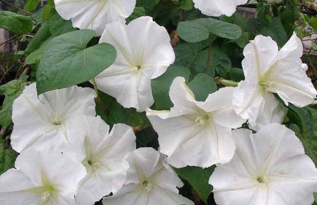 :夕颜中文名为月光花,花冠大,雪白色,极美丽,瓣中带淡绿色。