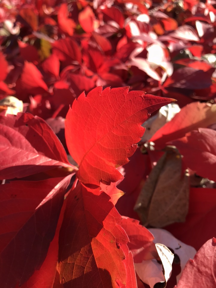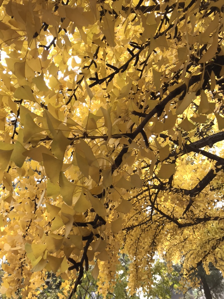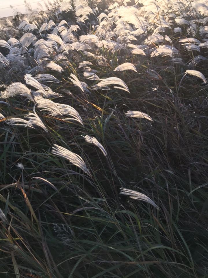 红色的地锦,黄色的银杏,绿色的国槐,紫色的荷兰菊,白色的荻花。