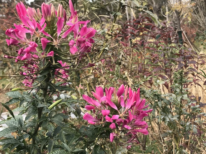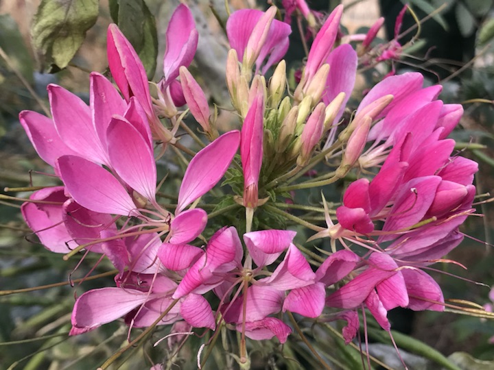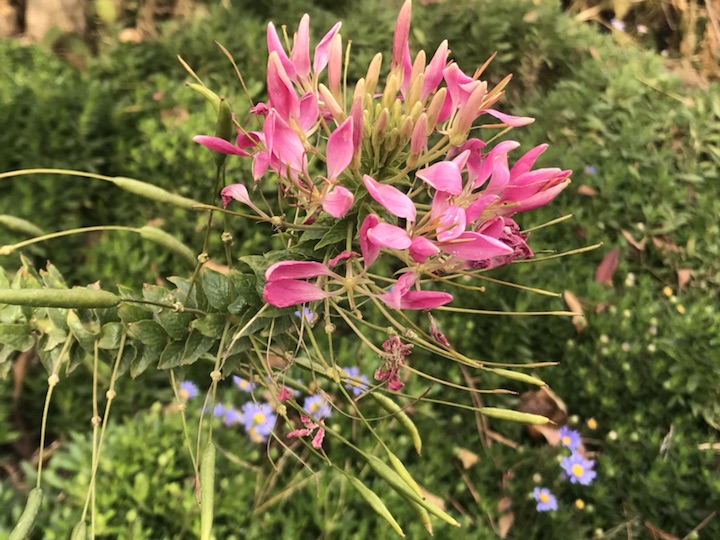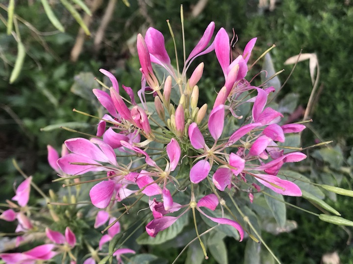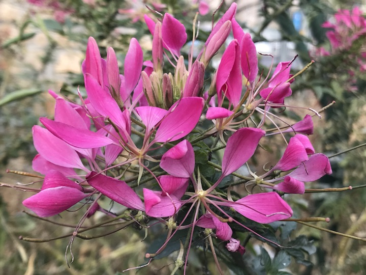 醉蝶花(学名:Cleome spinosa Jacq.):一年生草本植物,原产热带美洲,别称西洋白花菜、凤蝶草、紫龙须、蜘蛛花