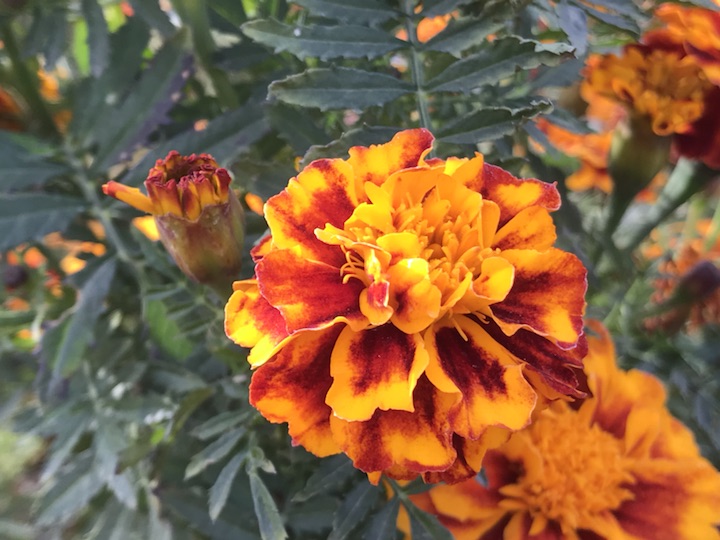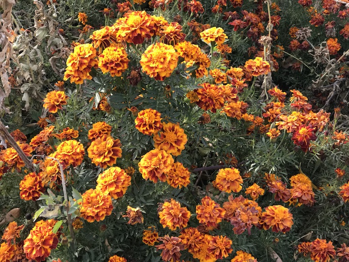 广阳谷的花有开的正当时的,也有花事将了的,比如这孔雀草