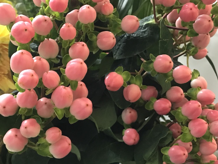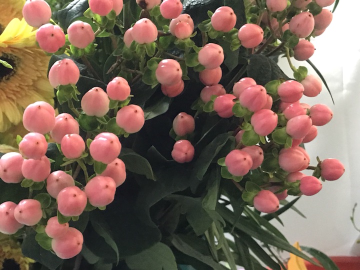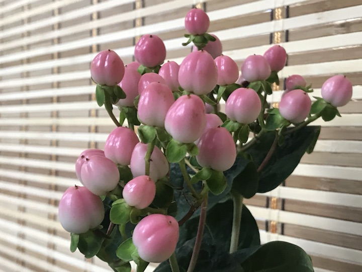 虽说之前插花的时候有碰到过三两枝,颜色是大红色,有点饱满不足干瘪有余的样子。对它也没太在意,所以说对它的认识,可以说是一直局限在图片上。偶然中看到这么一大束,颜色是这么的粉嫩可爱,一粒一粒书写的全是难以猜度的少女情节