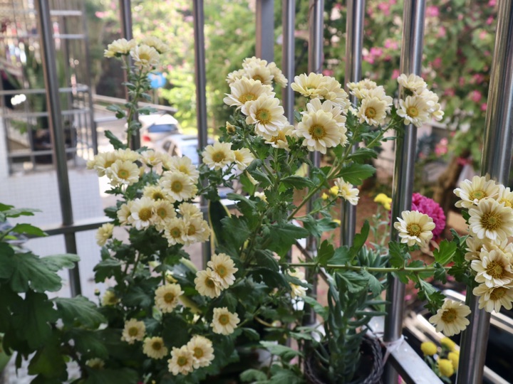 去年买的小菊切花,凋谢后水培生根,入土存活,今年迎来满树繁花,颜色还有点变化,成就感满满,体会丰收的喜悦