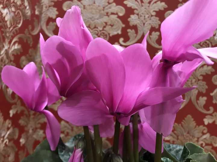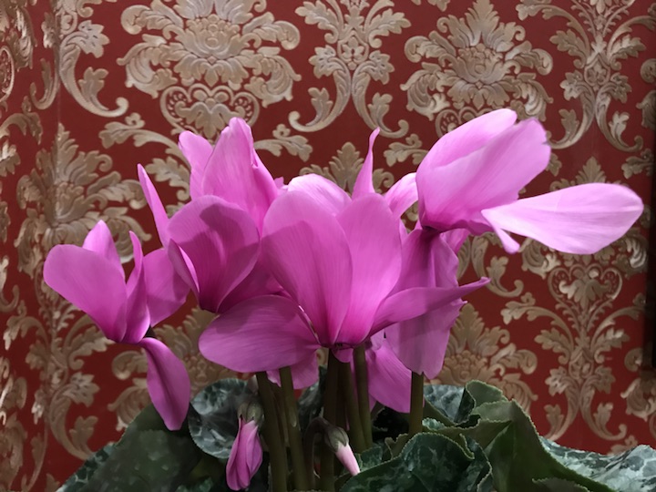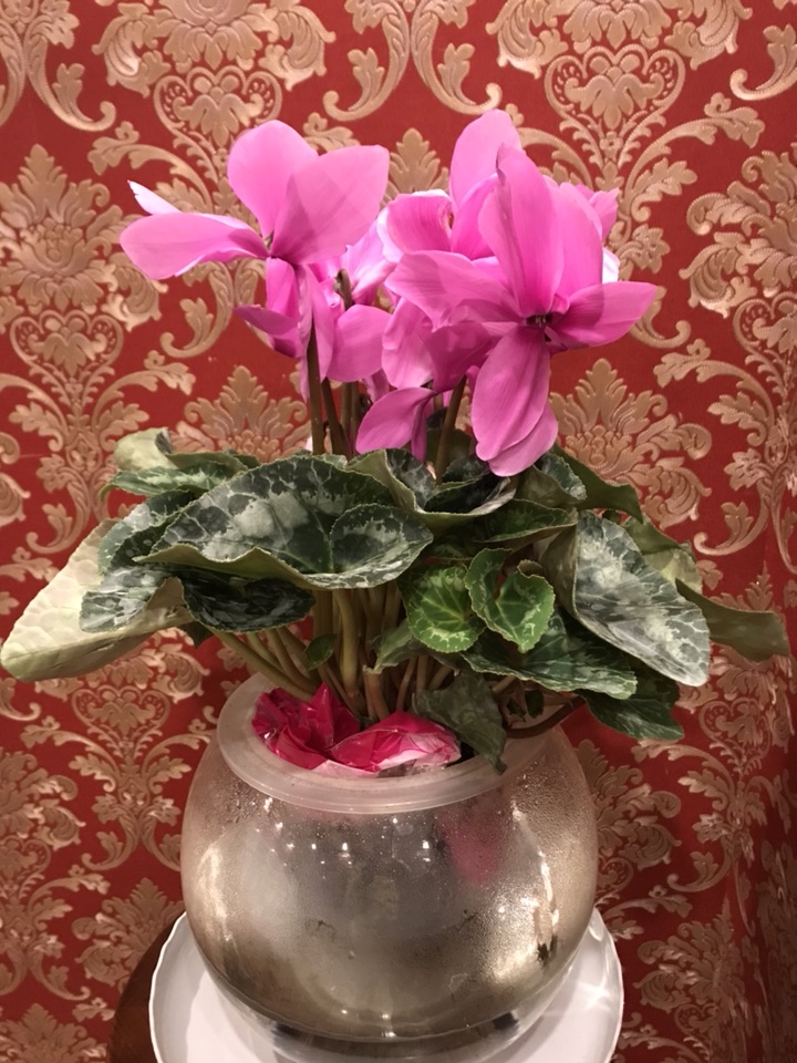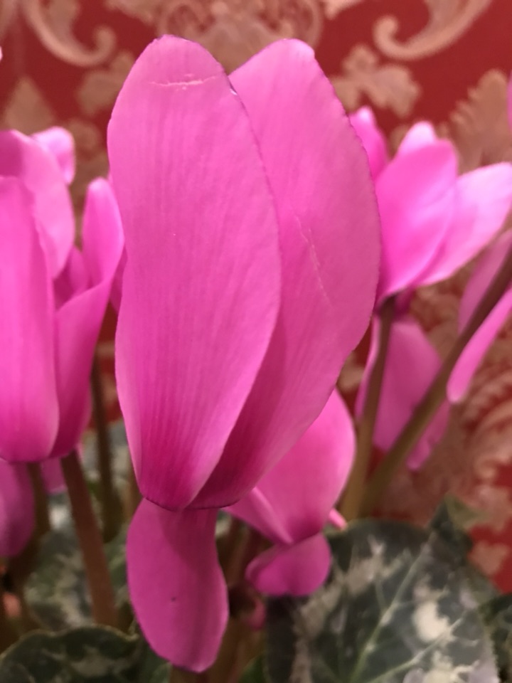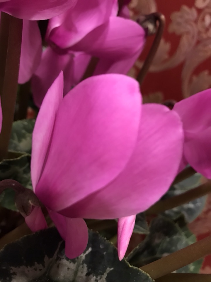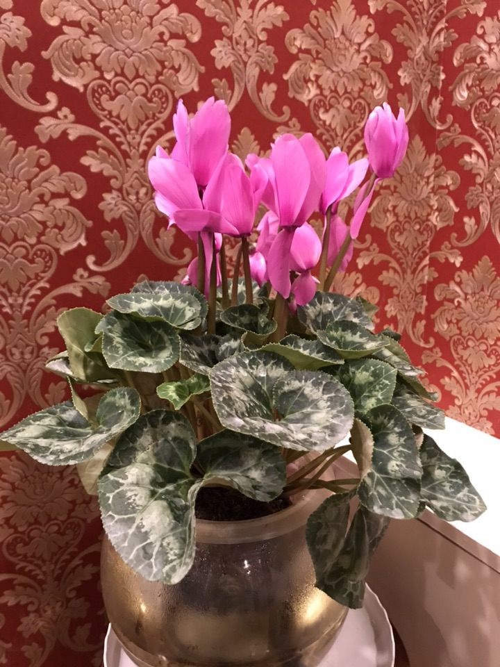 也不知是何品种的仙客来,粉嫩的颜色很是可爱,花型硕大且长,跟我之前见的大不相同。