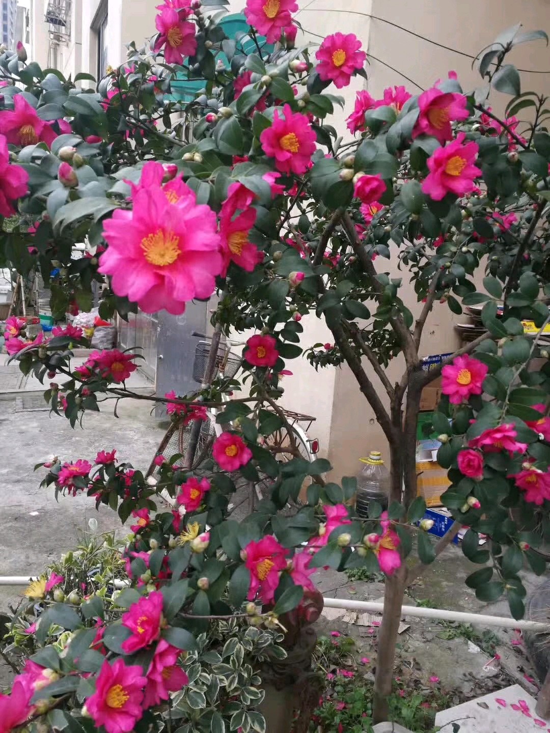 1212.茶梅繁花,花凋谢散一地。