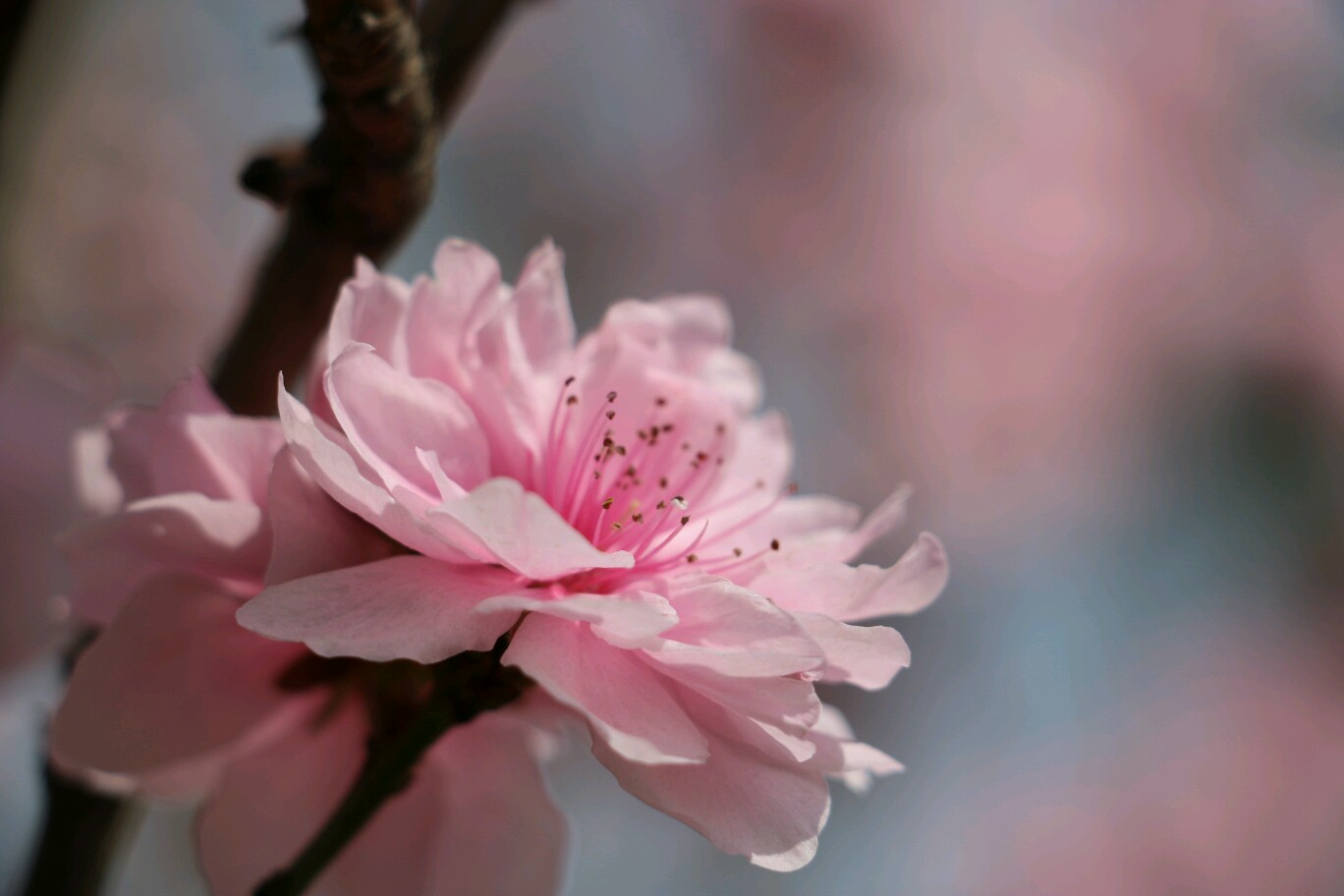 碧桃是落叶小乔木,花朵丰腴,色彩鲜艳丰富,花型多。有红花碧桃、粉花碧桃、红叶碧桃、白花碧桃等,华北地区大约4月中旬开花,花期15天左右,具有很高的观赏价值,在小区、公园、街道随处可见的美丽植物。