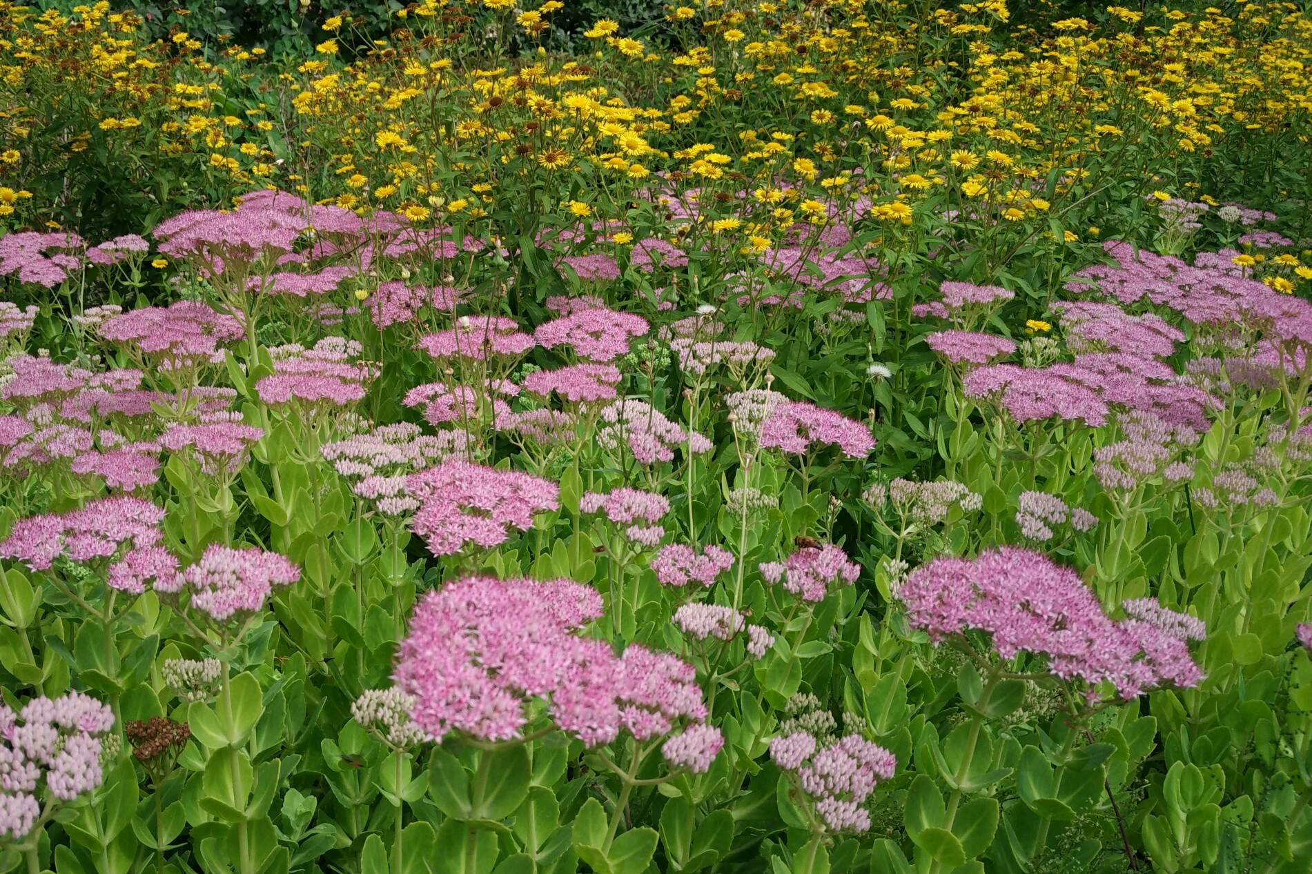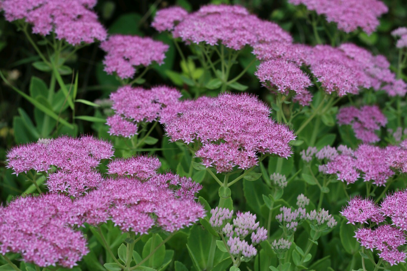 八宝景天是景天科、景天属多年生肉质草本植物,花期7~10月。花淡粉红色,几乎是景天科中花色最为艳丽的种类,是布置花坛、花境和点缀草坪、岩石园的好材料。