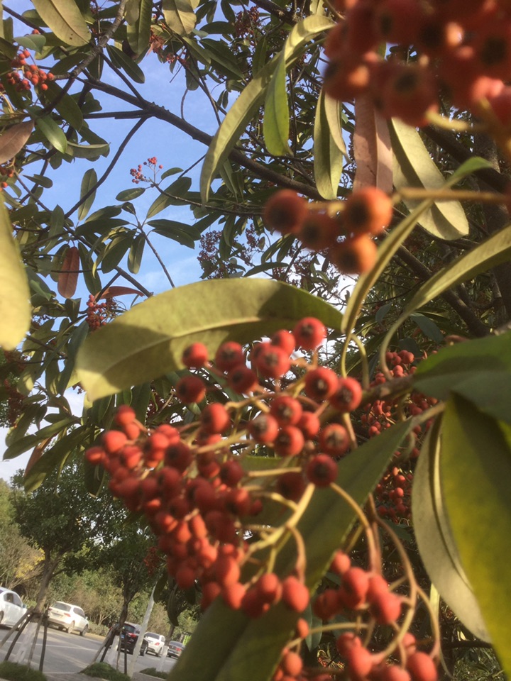 这次去西安有幸拍下了石楠果果,没闻到臭味的花花