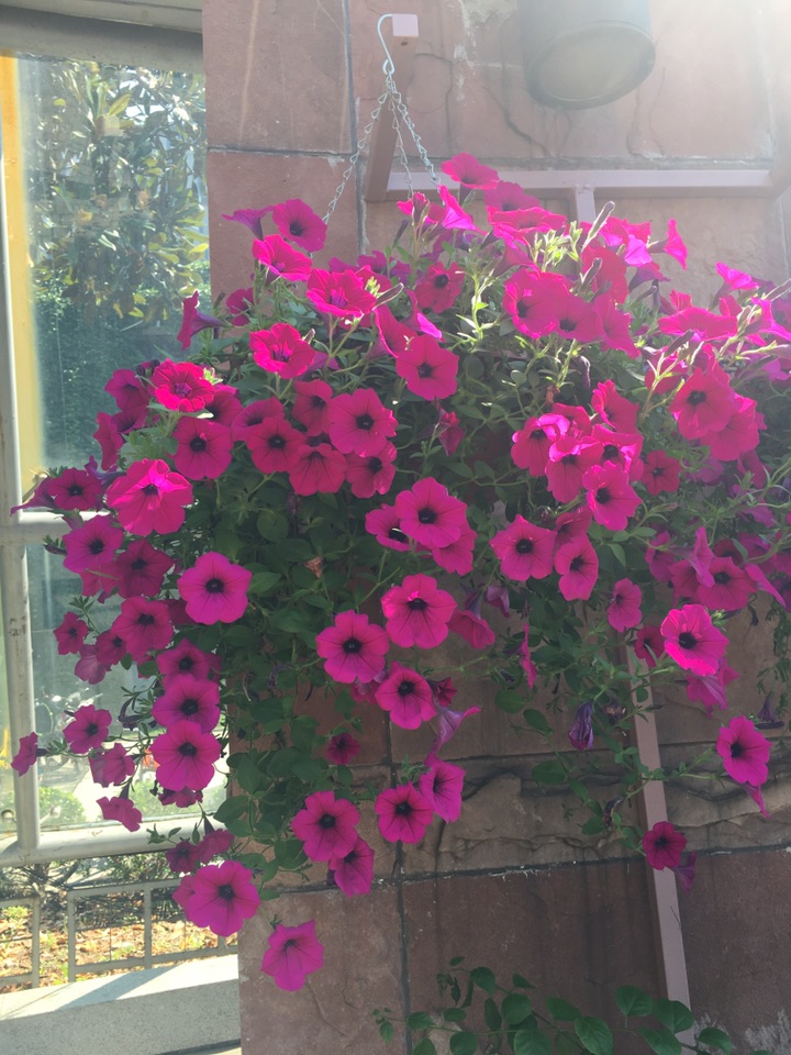 进门就看到不少地方挂的矮牵牛(碧冬茄)。