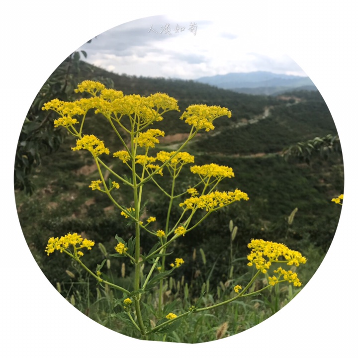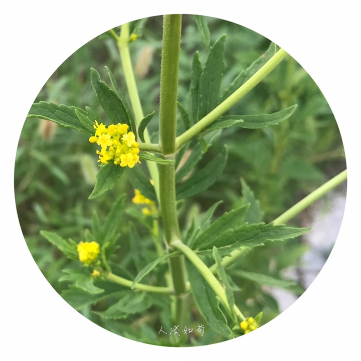 多年生草本,高20-60cm。根状茎稍斜升,长达10cm以上,顶端不分枝,有浓烈臭酱气味。茎多数丛生,连同花序梗被短糙毛。基生叶有柄,长2-4cm;茎生叶对生;叶柄短,上部叶渐无柄;叶长圆形或椭圆形,长3-7cm,羽状深裂至全裂,通常具3-6对侧生裂片,裂片条形,有稀的缺刻状牙齿,无毛或有糙毛。夏秋季开黄色花,密花聚伞花序顶生,3-7枝在枝端排成伞房状,宽4-15cm,轴、梗均被粗白毛和腺毛;小苞片腺形,对生;花萼小,萼齿5;花冠漏斗状,径3-5mm,基部成短细筒,筒基部一侧有偏突,上部5裂,裂片近圆形;雄蕊4,长于花冠;子房下位,圆柱状。瘦果小,倒卵圆柱状,背部贴有椭圆形的大膜质苞片。花期7-9月,果期8-9月。