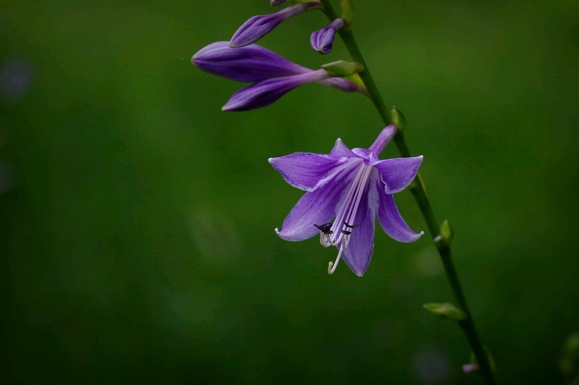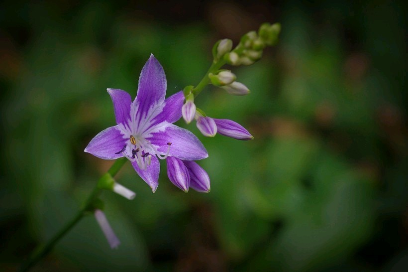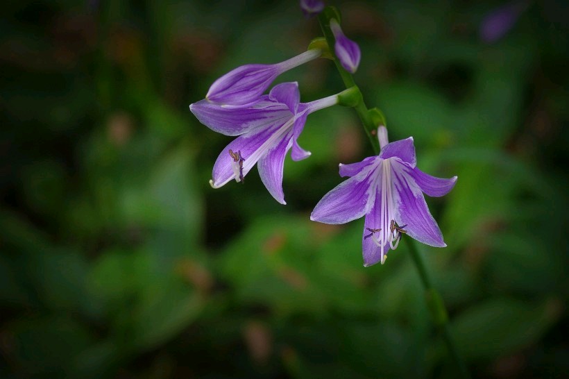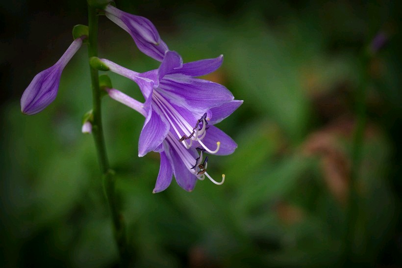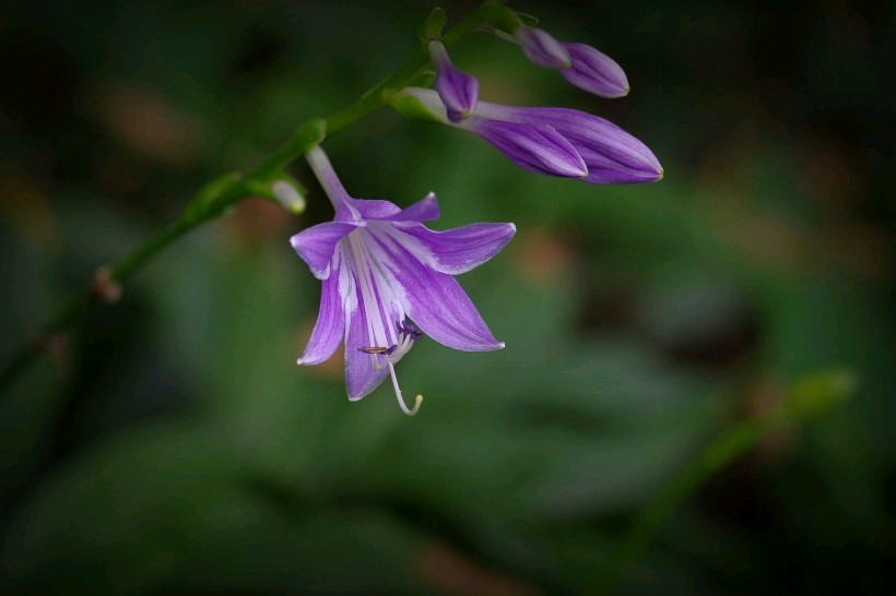 紫玉簪又名紫萼,百合科玉簪属植物。根状茎粗,叶卵圆形,极少叶片基部下延呈楔形,具7-11对侧脉;花葶高具10-30朵花;苞片矩圆状披针形,白色,膜质;花单生,盛开时从花被管向上骤然作近漏斗状扩大,紫红色;雄蕊伸出花被之外,完全离生。蒴果圆柱状,有三棱,花期6-7月,果期7-9月。产中国江苏、安徽、浙江、福建、江西、广东、广西、贵州、云南、四川、湖北、湖南和陕西。生于林下、草坡或路旁,海拔500-2400米。各地常见栽培,供观赏。内用治胃痛、跌打损伤,外用治虫蛇咬伤和痈肿疗疮。