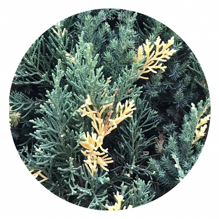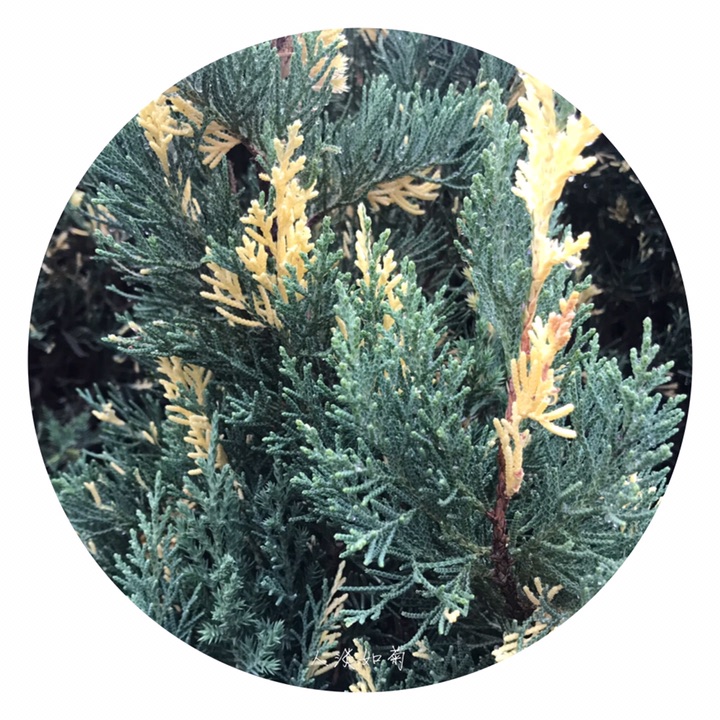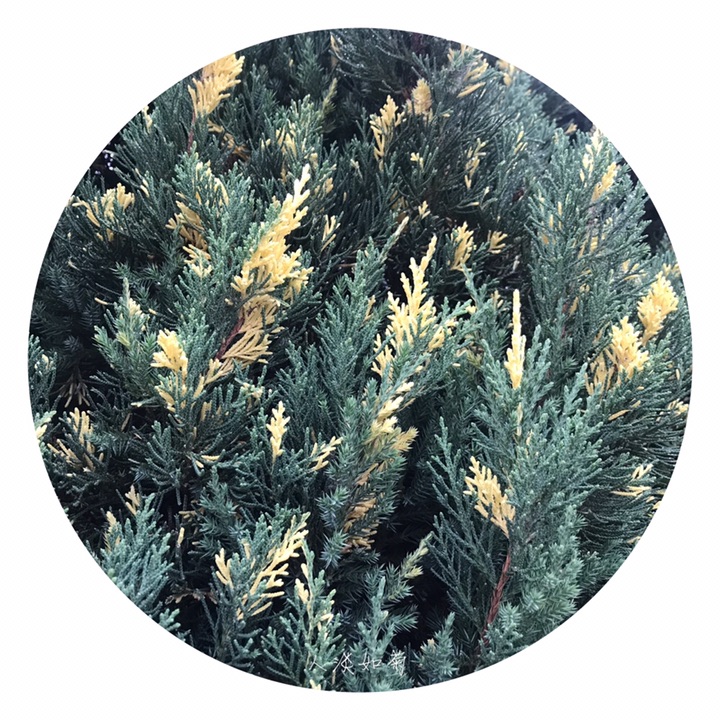 金星桧,Sabina chinensis (L.) Ant. cv. Aureoglobosa,柏科圆柏属的一种常绿灌木或小乔木,树冠近球形或塔形,枝密生,多为鳞叶,绿叶丛中杂有金黄色枝叶。