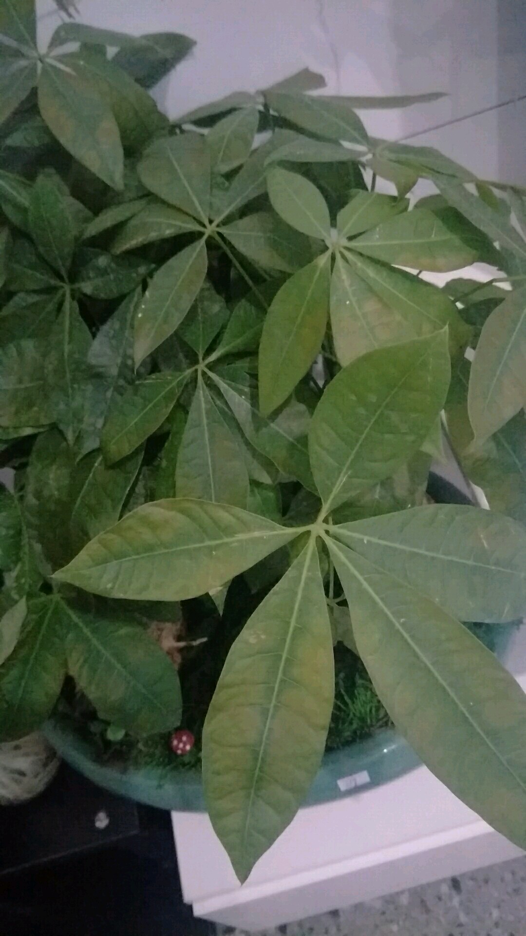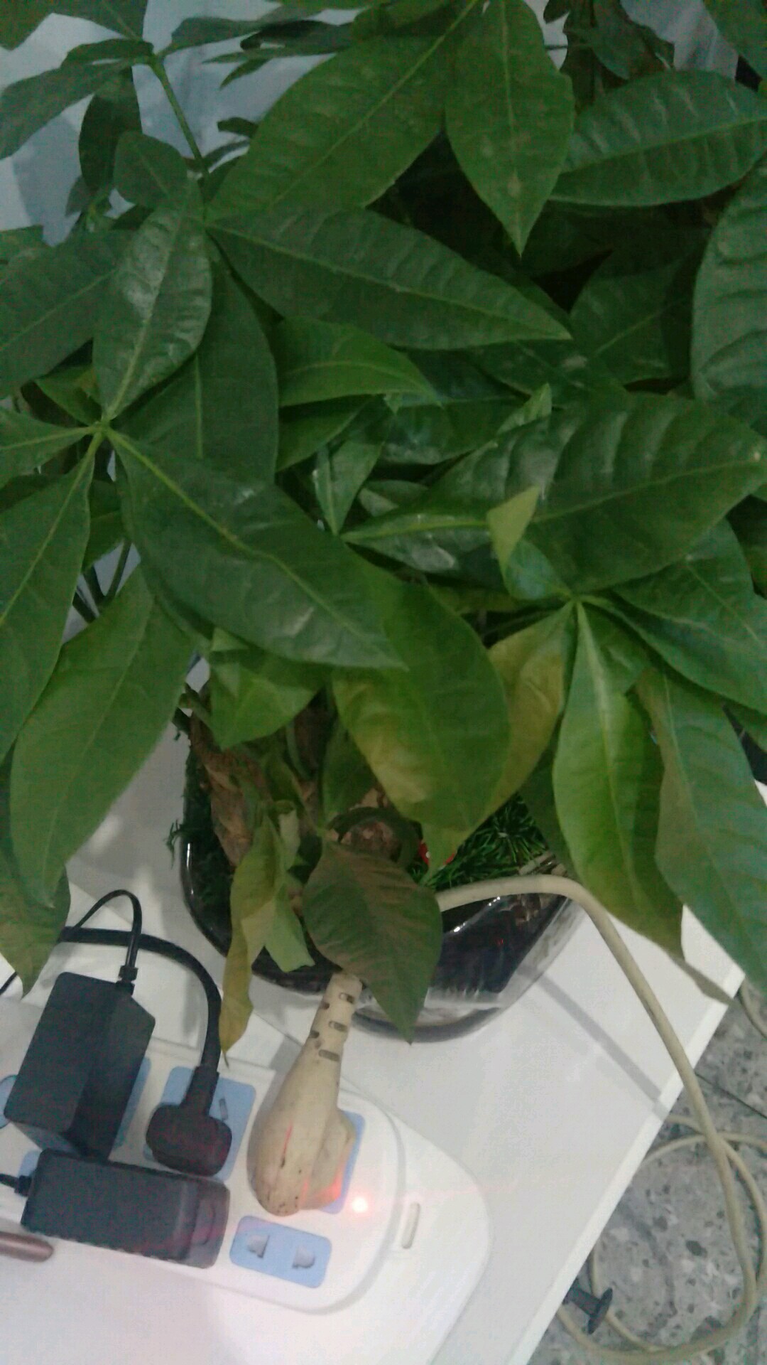 这两盆发财树买来放在电视两边,十天左右,出现叶片发黄,死杆,怎么回事?