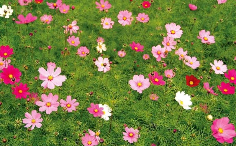 波斯菊原产于墨西哥,在哥伦布发现新大陆之后,欧洲的淑女绅士们,才有缘见这种楚楚动人的花。船员们采下种子,将它带回欧洲栽种,由于它的长相讨人喜爱,又容易栽培,很快的从花园伸向郊野、山林,在欧洲大陆落地生根。此外,大波斯菊也征服了植物学者的心。它的学名Cosmos,希腊文原意有宇宙、和谐、秩序、名誉、善行等正面意义,可见命名者对它实在是厚爱有加。
