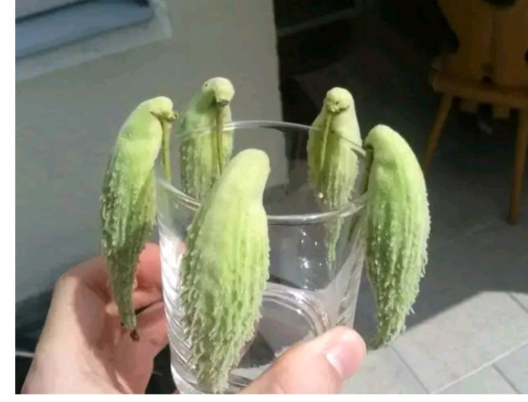 这有几只鹦鹉正在喝水,其实是苦瓜。