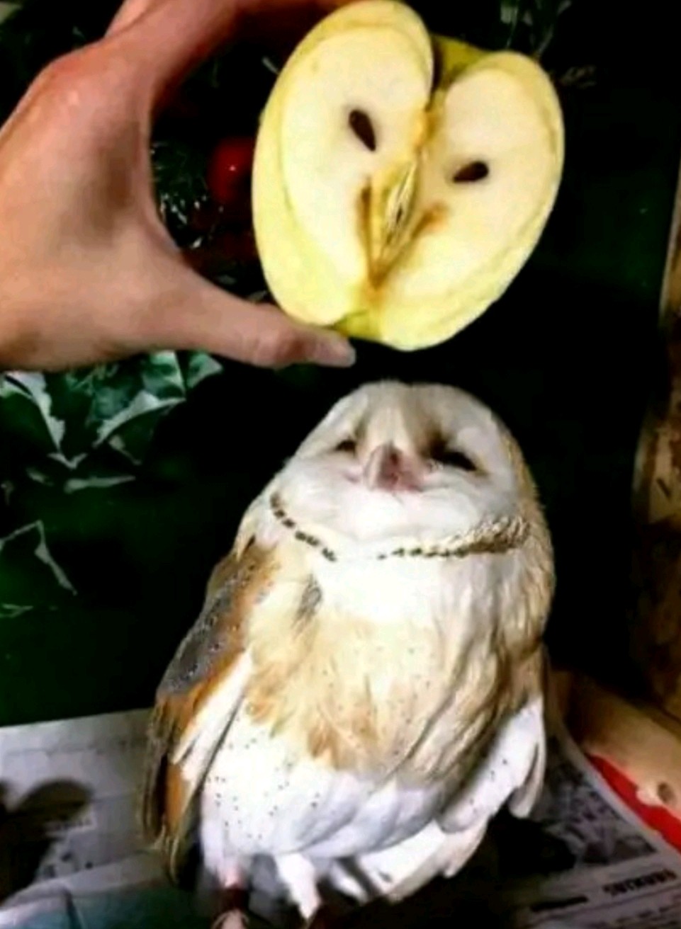 苹果和猫头鹰撞脸了。🍎🐦😁😁😁