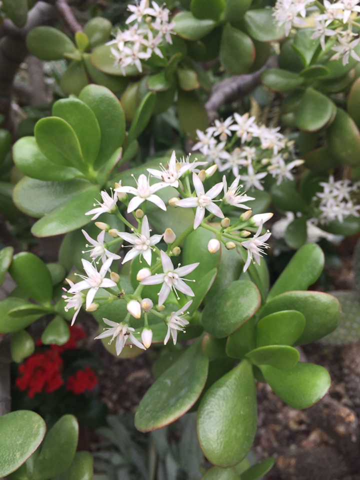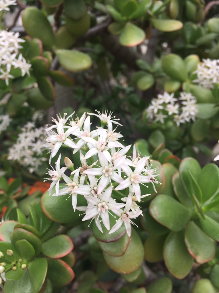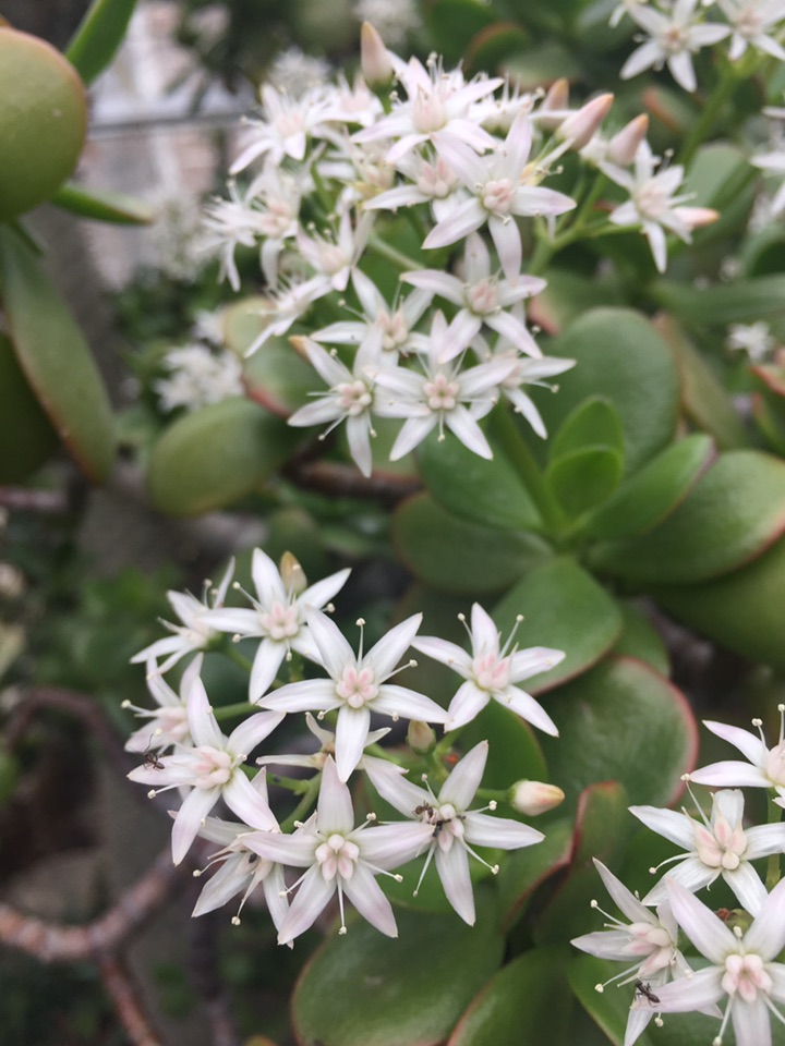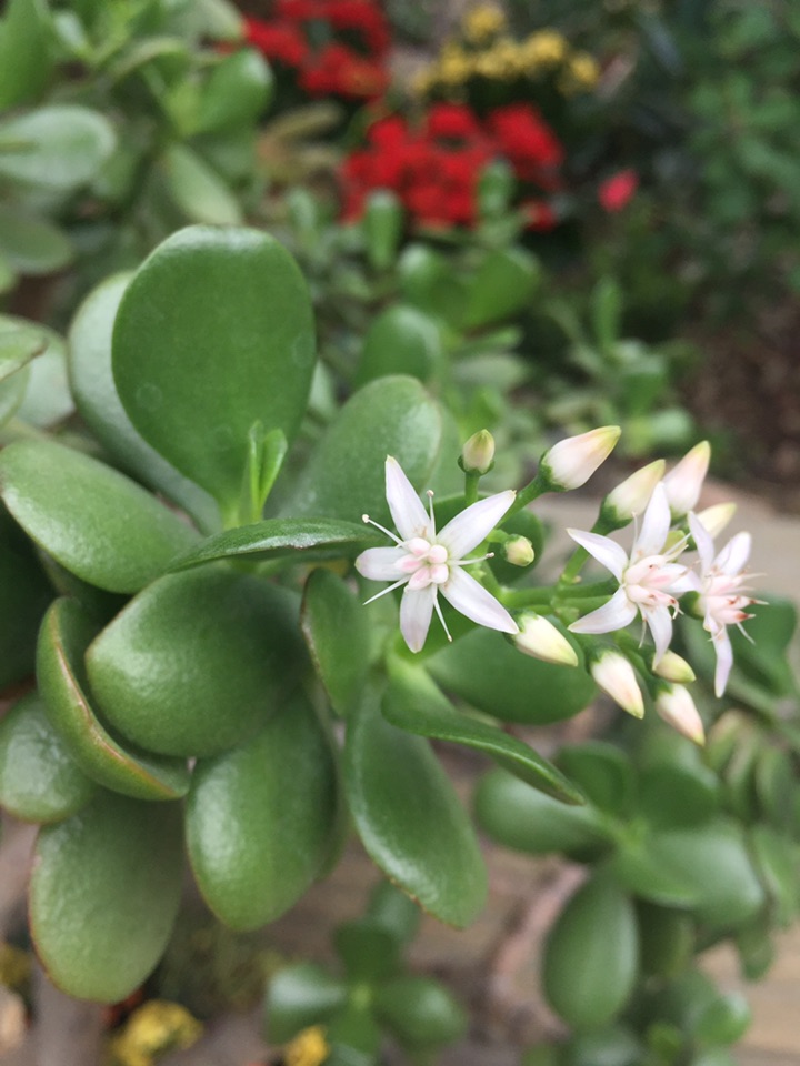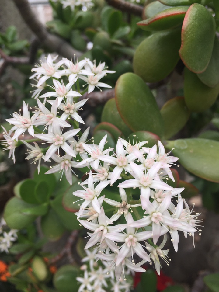 玉树很常见 也曾经在家里种过 可是玉树开花却是第一次看到!原来玉树开花可以这么好看、每一朵都秀丽、剔透玲珑 让人忍不驻足观赏!这个植物园里有大概八九株玉树 培育得都很健壮 株株都在花期 花朵或多或少、各具风姿 给冬日里的植物园增添了许多花意、清新