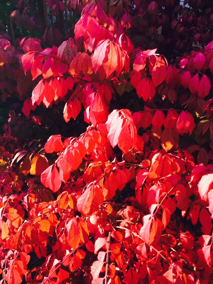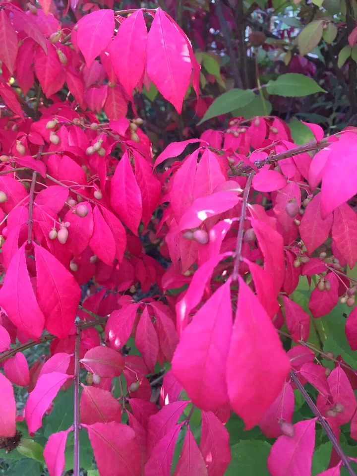 落叶小灌木,这种植物是秋天色彩的一种代言 ---- 那种红、那种艳、还有那种与众不同的通透...... 小城除了丁香外,卫矛便是另一种普遍种植的一种植物;不过,看到门口红艳艳的卫矛叶子,人们便知美丽的夏天已渐行渐远、而冬天的来临也已是指日可待了!😜
