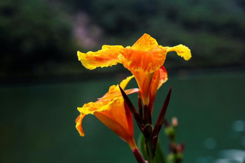 六月的风,吹过山麓,红了杨梅,绿了芭蕉,瑶溪的溪水还是那样清澈,金钟瀑一瀑三折,声如洪钟轰鸣,玄真观门前石羊,石马,神态自如,栩栩如生。转眼又是一年,昨日雨停转晴,去瑶溪转转,湖边美人花开得正欢,拍几张留念欣赏……带雨红妆湿,迎风翠袖翻。欲知心不卷,迟暮独无言。