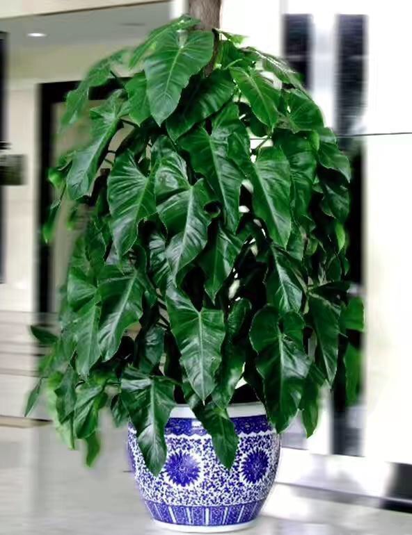 喜林芋每小时能吸收6微克空气中的有害物质,并将之转化为对人体的无害物质,被称为植物中的“高效空气净化器”。它特别能净化空气中的苯、三氯乙稀、甲醛等,适合在新房装修好的居室摆放。其宽大的叶子能提高房间的湿度,有利于呼吸和美容。