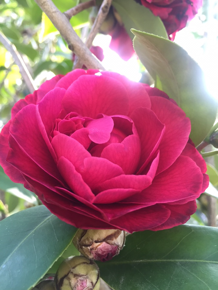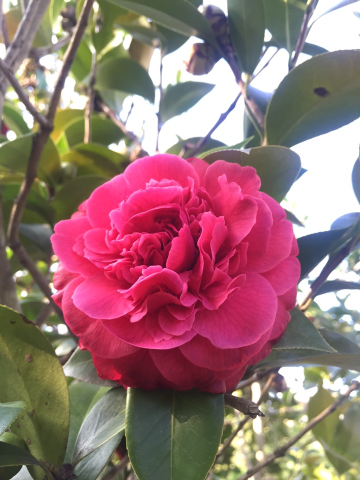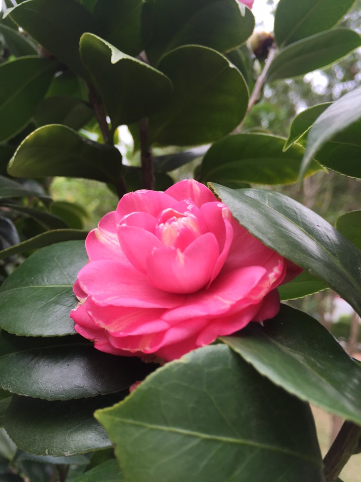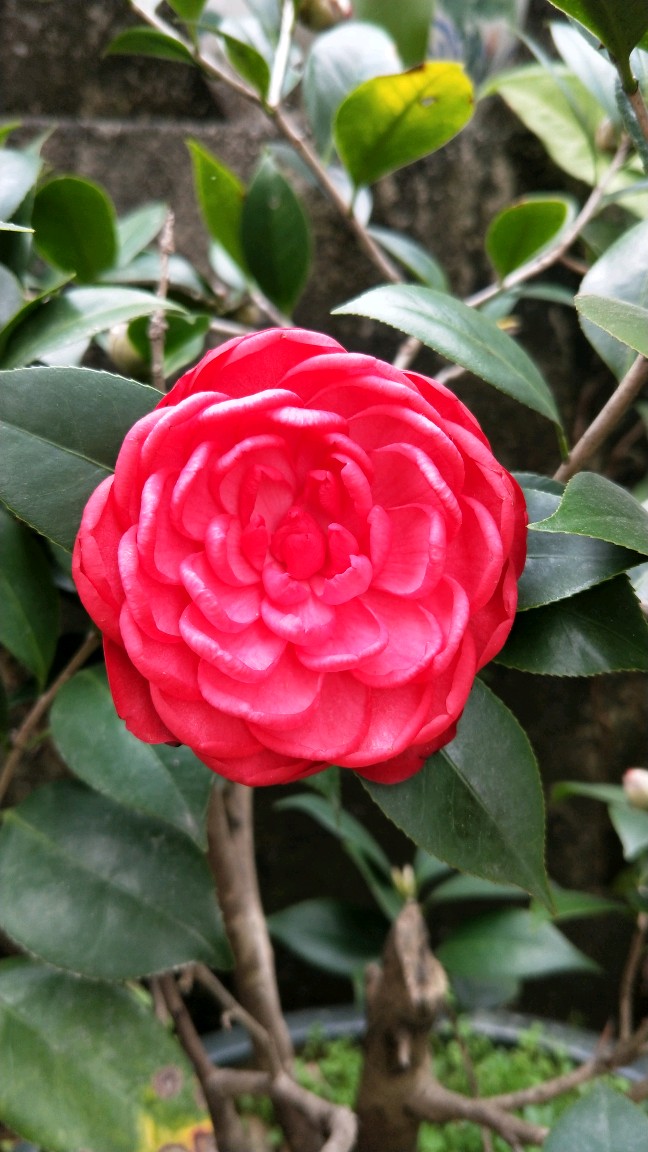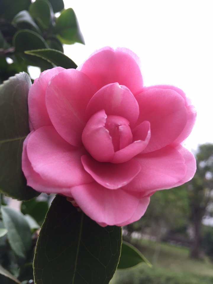 不过还好,娇嫩的山茶花就在这样的天气里妩媚地绽放了。