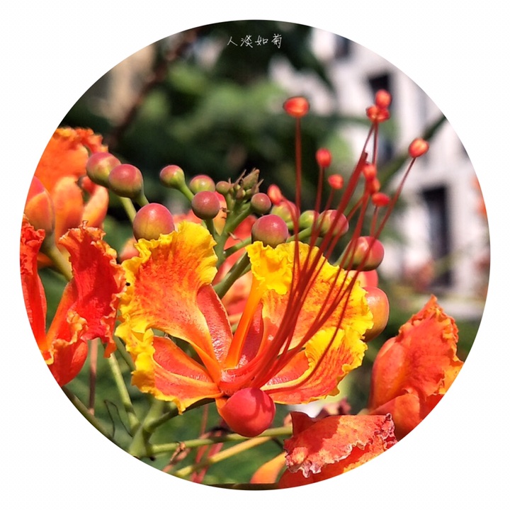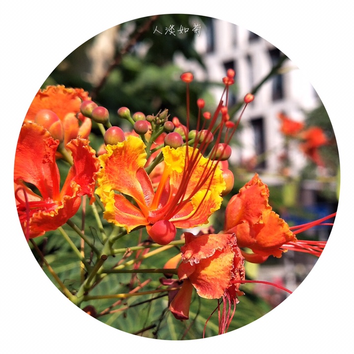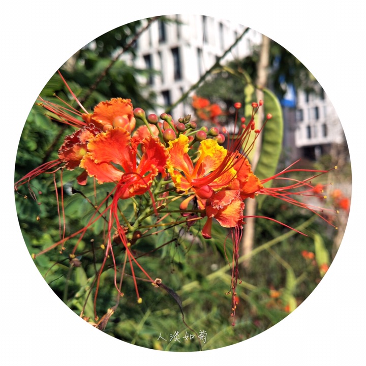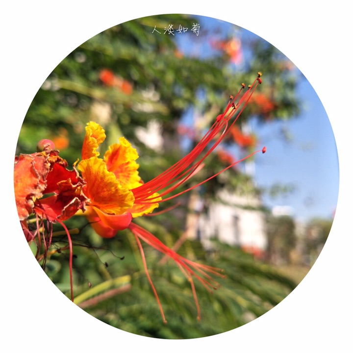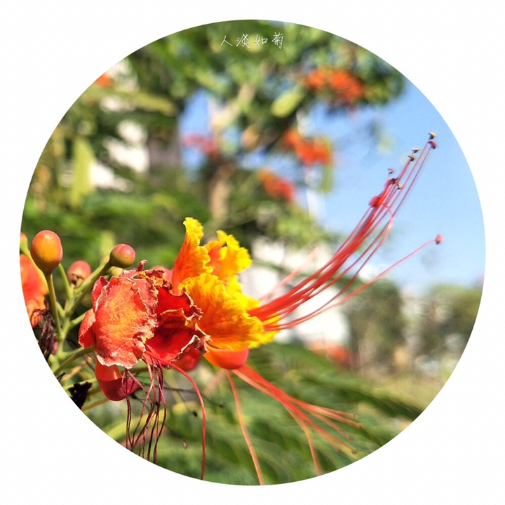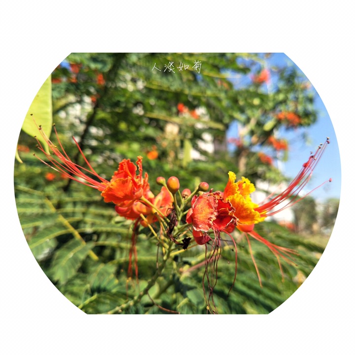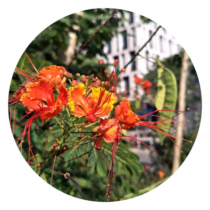 金凤花(学名:Caesalpinia pulcherrima (L.) Sw.),别称黄金凤、蛱蝶花、黄蝴蝶、洋金凤、红蝴蝶。大灌木或小乔木;高达3米,枝绿或粉绿色,有疏刺。二回羽状复叶4对至8对,对生,小叶7对至11对,长椭圆形或倒卵形,基部歪斜,顶端凹缺,小叶柄很短。总状花序顶生或腋生,花瓣圆形具柄, 橙或黄色,花梗长达7厘米。荚果黑色。种子6颗至9颗。花果期几乎全年。