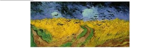 这一次还是梵高的画,他的最后一幅画: 他画的《麦田上的乌鸦》,他的这一幅画有粗犷的麦田, 既有绿色的普通小麦,又有黄色的普通小麦,这一幅梵高的画带有死亡气息,而且非常严重。