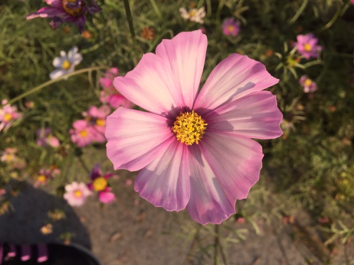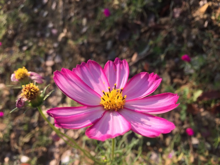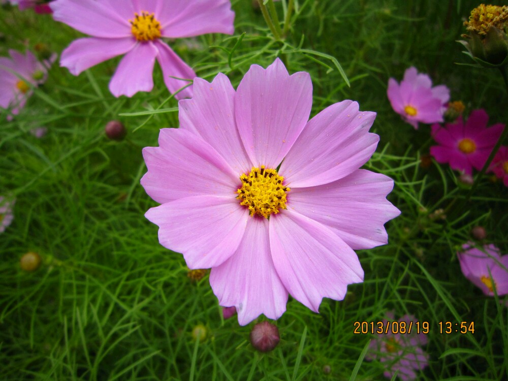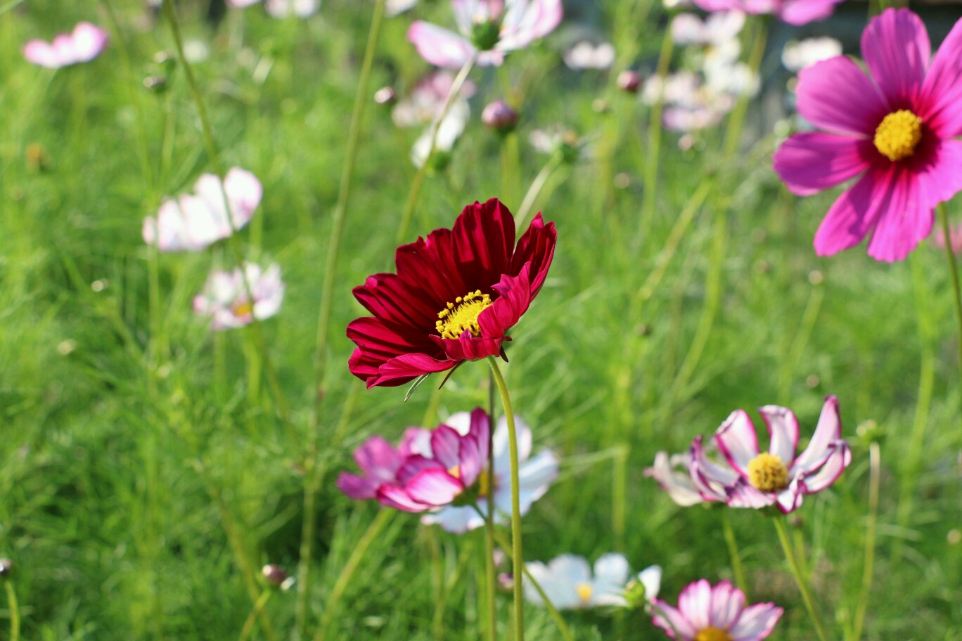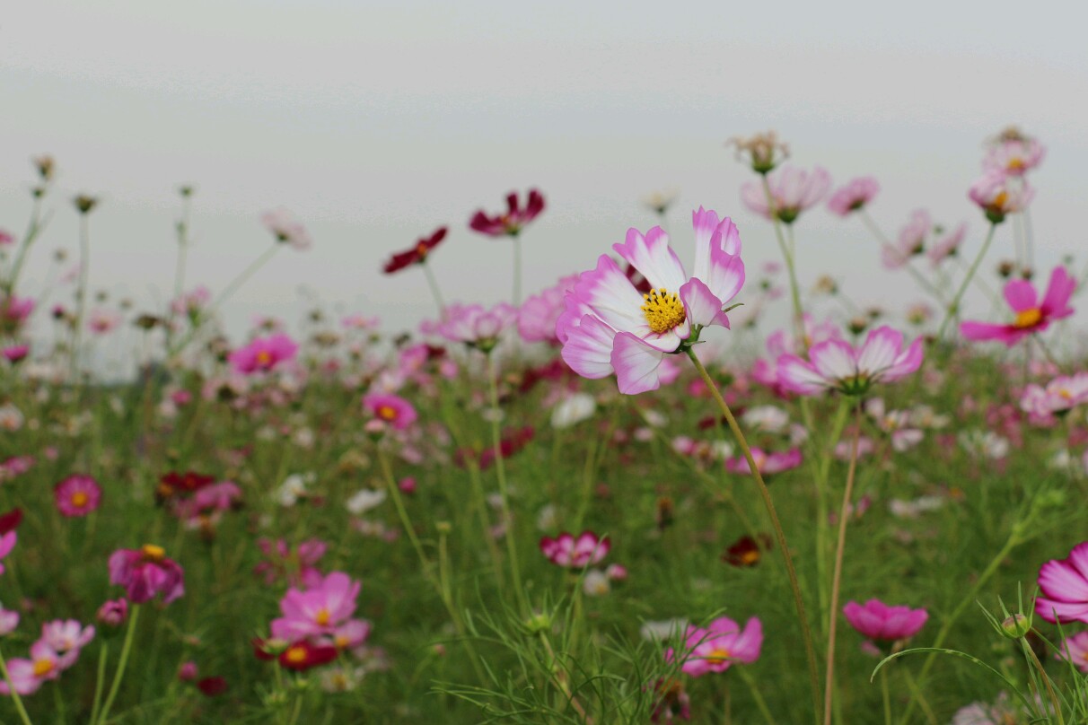 波斯菊叶形雅致,花色丰富,有粉、白、深红等色。