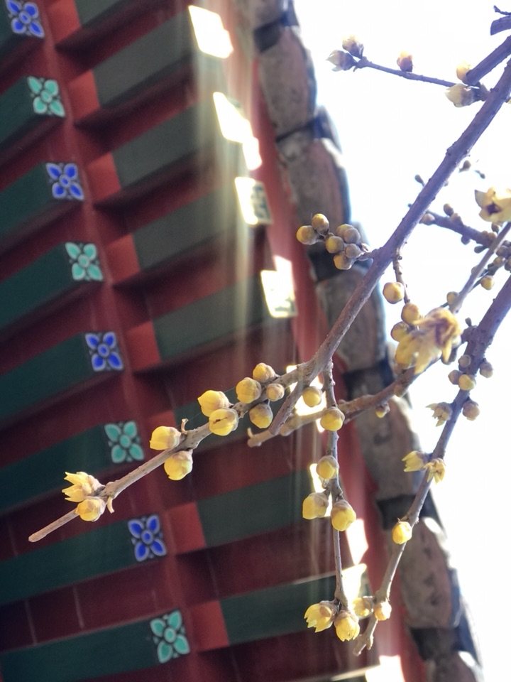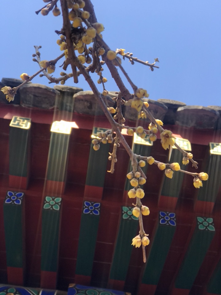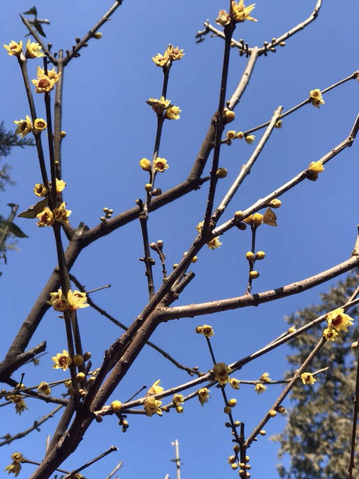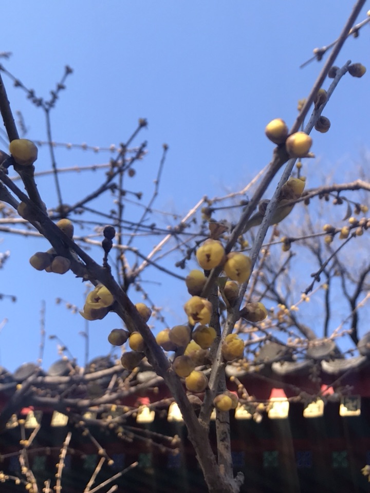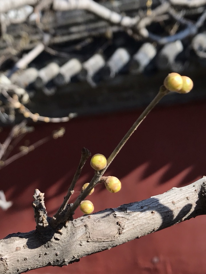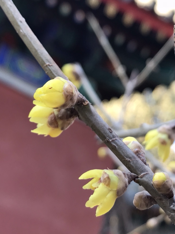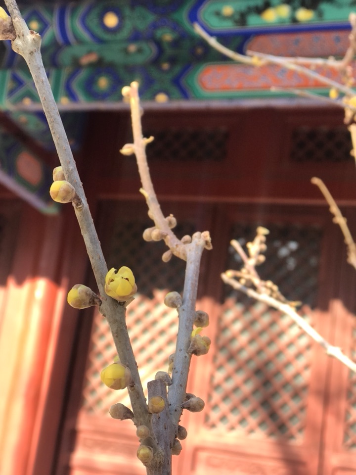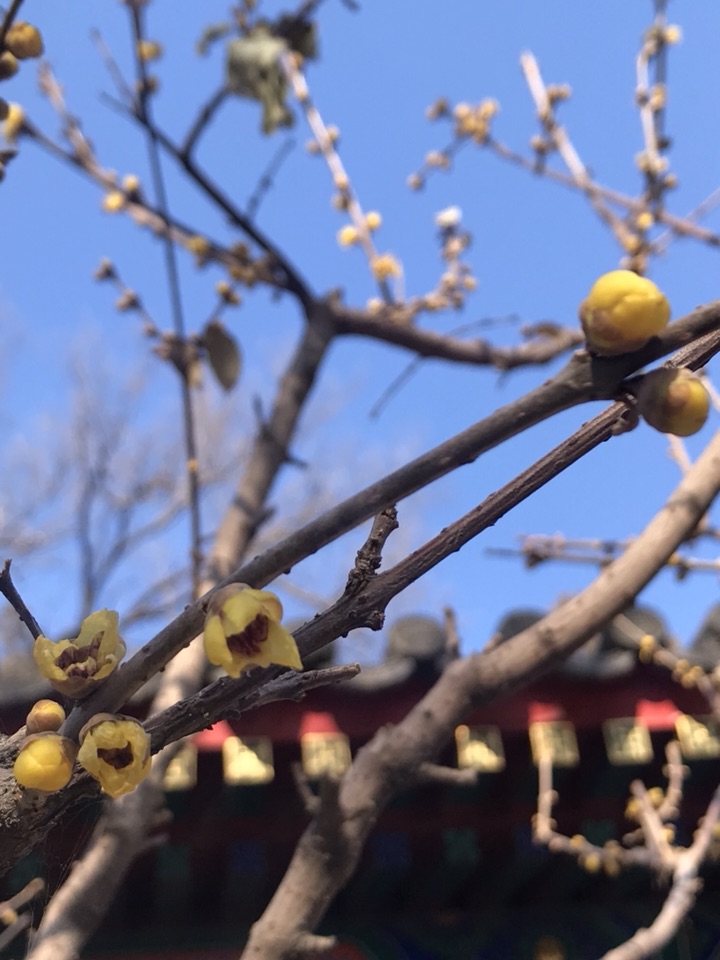 新年的第一天去了植物园,此行的目的是为了看卧佛寺的蜡梅。记得17年的圣诞前后就听说卧佛寺的蜡梅开了,一直说去却一直没去成,这次还没听到它开花的召唤之声,我却很自觉的先过来了。还好,还好,没让我失望,凌寒独自开,小小的黄色花星星点点的绽放在枝头,搭配上蓝天红墙很是雅致。只是香味却是大打折扣了不少,你要凑近了才能闻到,不像去年三四月份一进门便是扑鼻的香,也许是天气太冷或是初开的原因吧,反正我还会再来的!
