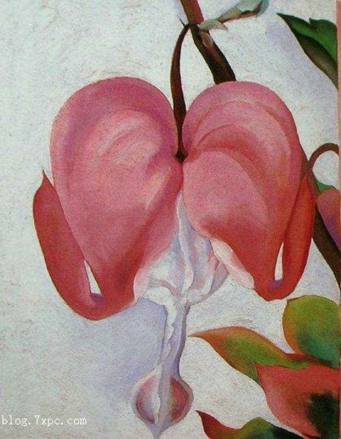 这一幅画还是美国女画家奥基弗画的,她画的这一朵垂下来的荷包牡丹感觉就像裂开的心。