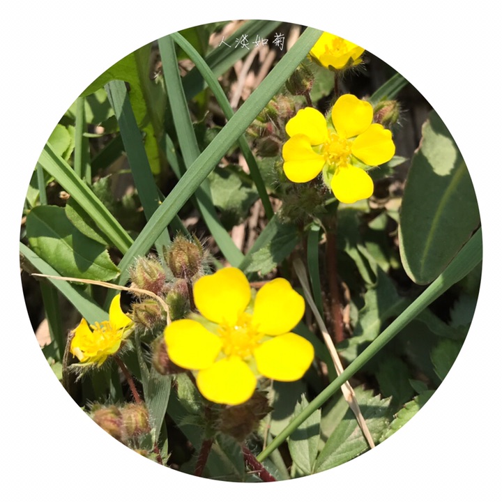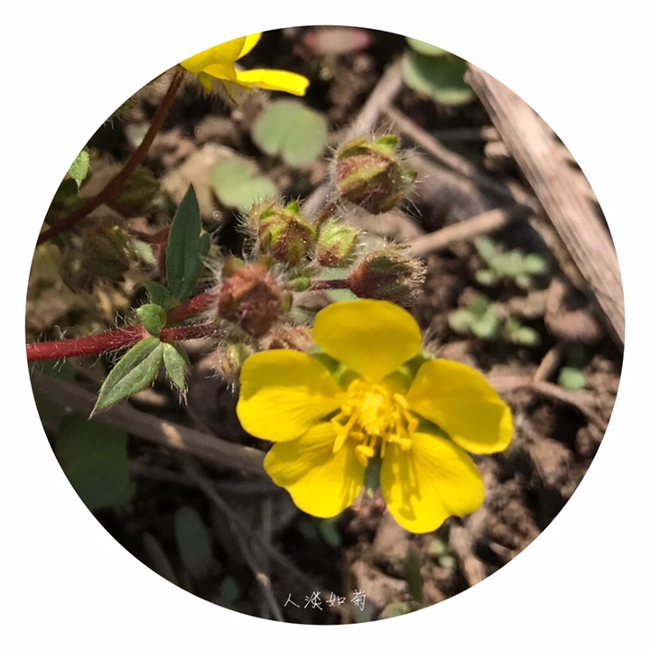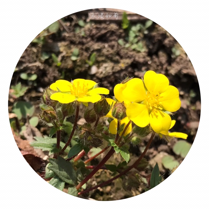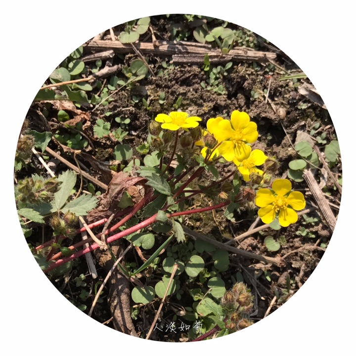 多年生草本,有纤匍枝或不明显。根分枝多,簇生。花茎纤细,直立或上升,高8-25厘米,被平铺或开展疏柔毛。基生叶掌状3出复叶,连叶柄长4-30厘米,宽1-4厘米;小叶片长圆形、卵形或椭圆形,顶端急尖或圆钝,基部楔形或宽楔形,边缘有多数急尖锯齿,两面绿色,疏生平铺柔毛,下面沿脉较密;茎生叶I -2,小叶与基生叶小叶相似,唯叶柄很短,叶边锯齿减少;基生叶托叶膜质,褐色,外面被稀疏长柔毛,茎生叶托叶草质,绿色,呈缺刻状锐裂,有稀疏长柔毛。伞房状聚伞花序顶生,多花,松散,花梗纤细,长1-1.5厘米,外被疏柔毛;花直径0.8-1厘米;萼片三角卵形,顶端渐尖,副萼片披针形,顶端渐尖,与萼片近等长,外面被平铺柔毛;花瓣淡黄色,长圆倒卵形,顶端微凹或圆钝;花柱近顶生,上部粗,基部细。成熟瘦果卵球形,直径0.5-1毫米,表面有显著脉纹。花果期3-6月。