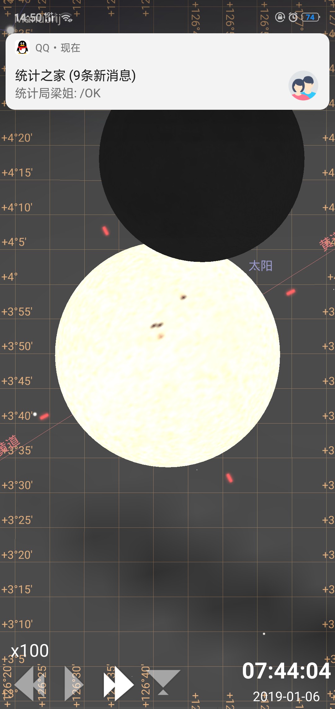长春最大食分是0.465,食甚时间是8:34,复圆时间是9:21。