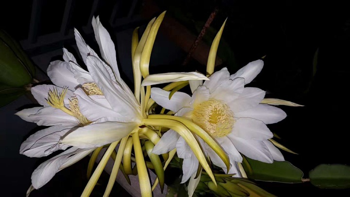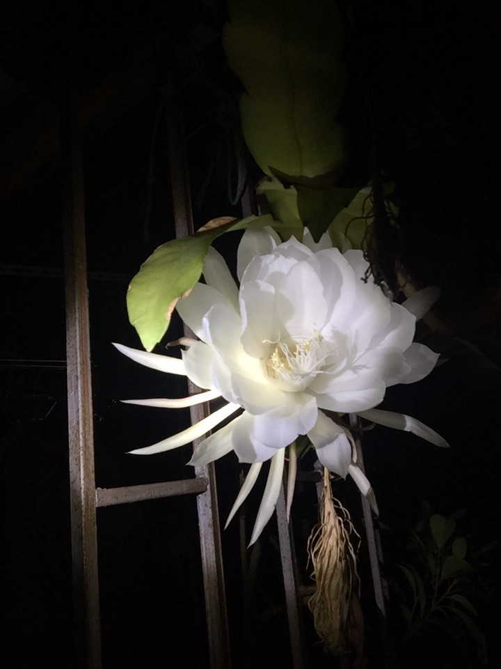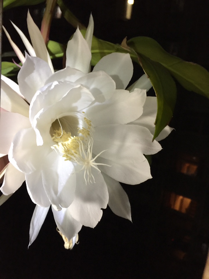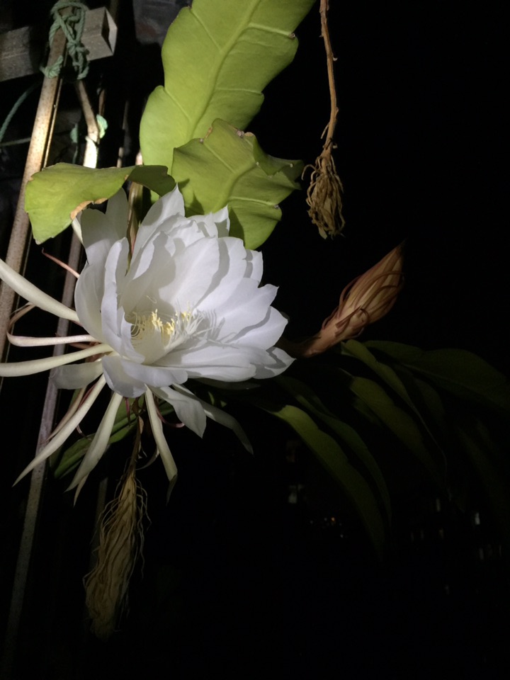 733. 自家种的火龙果开花啦!花很像昙花!