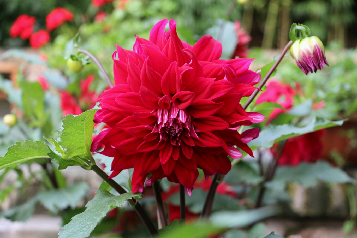 大丽花之所以被称为世界名花之一,主要是因为它的花期长、花径大、花朵多,以色彩瑰丽,花朵优美而闻名。