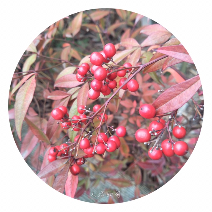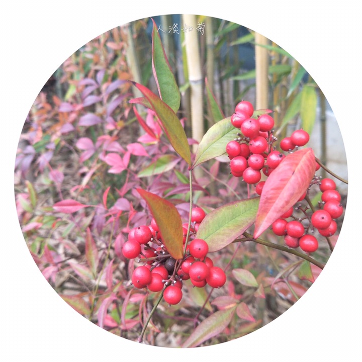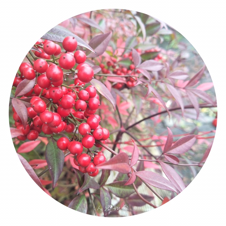 南天竹,别称南天竺、红杷子、天烛子、红枸子、钻石黄、天竹、兰竹。拉丁文名Nandina domestica. 毛茛目小檗科南天竹属植物,是我国南方常见的木本花卉种类。由于其植株优美,果实鲜艳,对环境的适应性强,常常出现在园林应用中。常见栽培变种有:玉果南天竹,浆果成熟时为白色;绵丝南天竹,叶色细如丝;紫果南天竹,果实成熟时呈淡紫色;圆叶南天竹,叶圆形,且有光泽。因其形态优越清雅,也常被用以制作盆景或盆栽来装饰窗台、门厅、会场等。