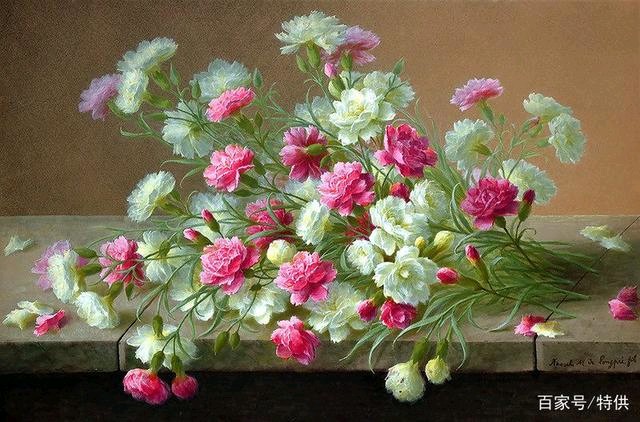 今天😊,又是法国🇫🇷著名的野兽派画家劳尔.杜菲画的,今天😊,他画的花儿只有一种,就是康乃馨,这康乃馨既有红色的,又有白色的。