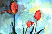今天😊 ,这一幅画是由法国🇫🇷后印象派画家保罗塞尚画的,他画的《郁金香🌷》背景多么漂亮,而且,这几朵郁金香🌷花它们也颜色格外的鲜艳,有一朵美丽的郁金香的“脑袋”垂下来了。