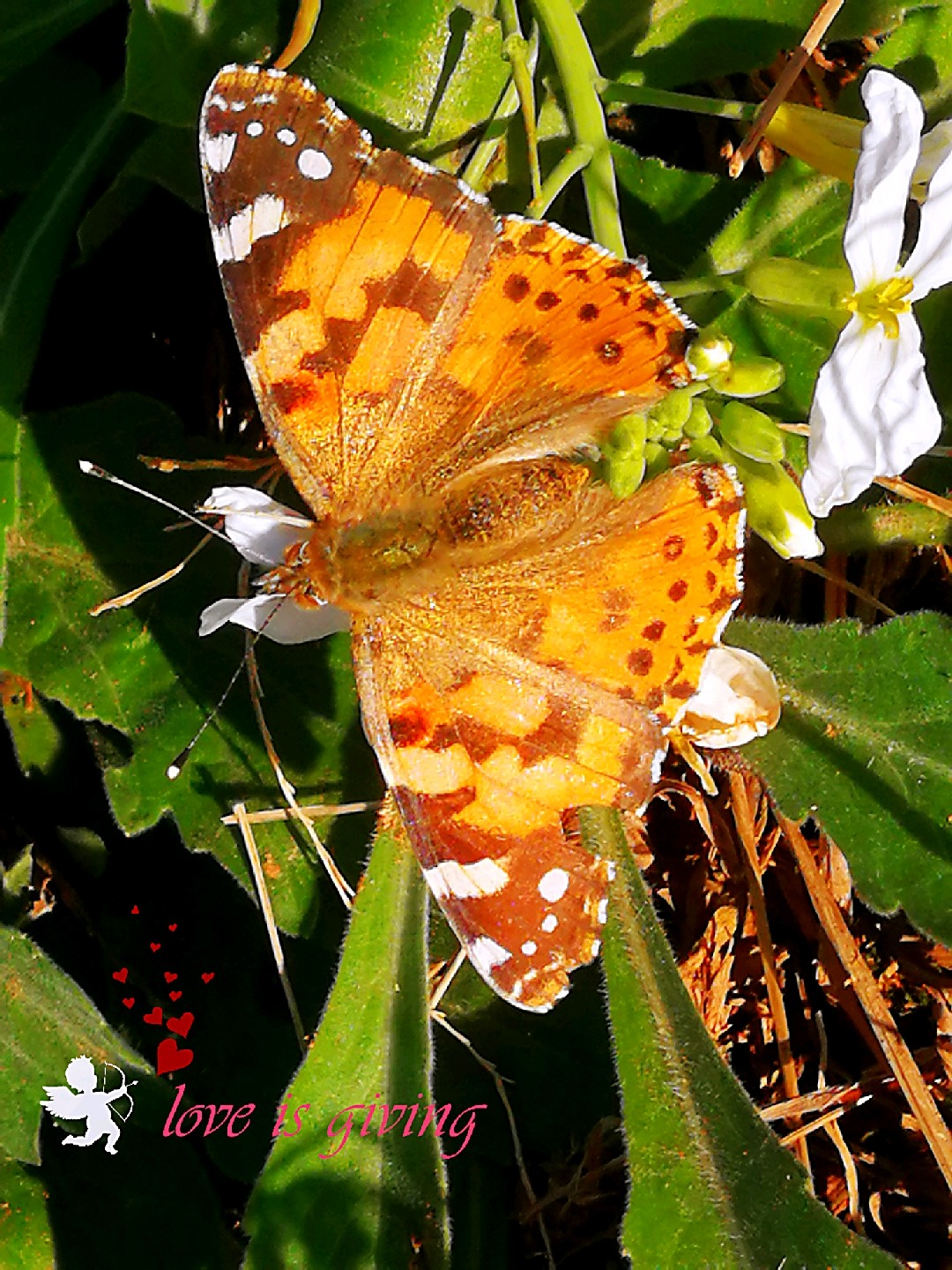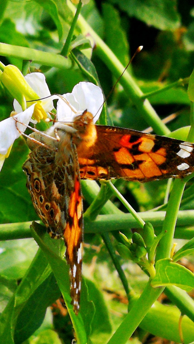 微风轻来萝卜花采蜜的小红蛱蝶