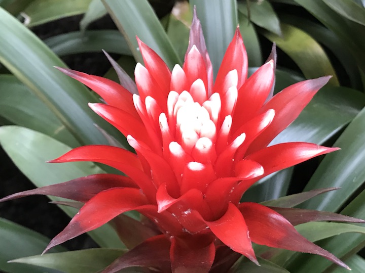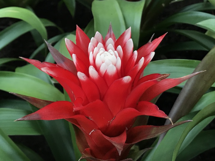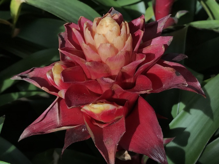 水塔花(Billbergia pyramidalis Lindl.) 凤梨科多年生常绿草本多浆植物,叶基部相互抱合,使植株中心成筒状,内可盛水而不漏,状似水塔,故得名"水塔花"。别称火焰凤梨、比尔见亚、红藻凤梨、水槽凤梨、红笔凤梨。