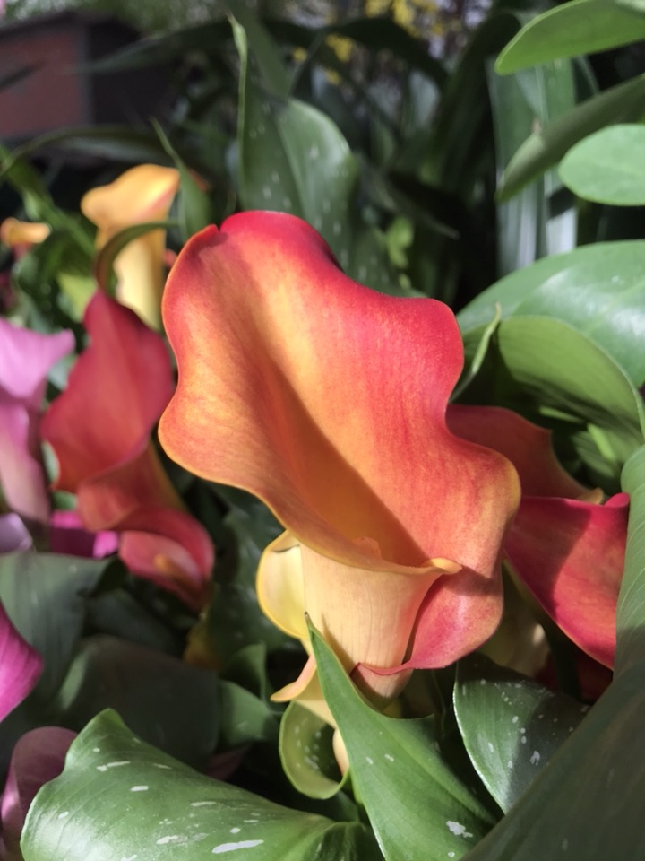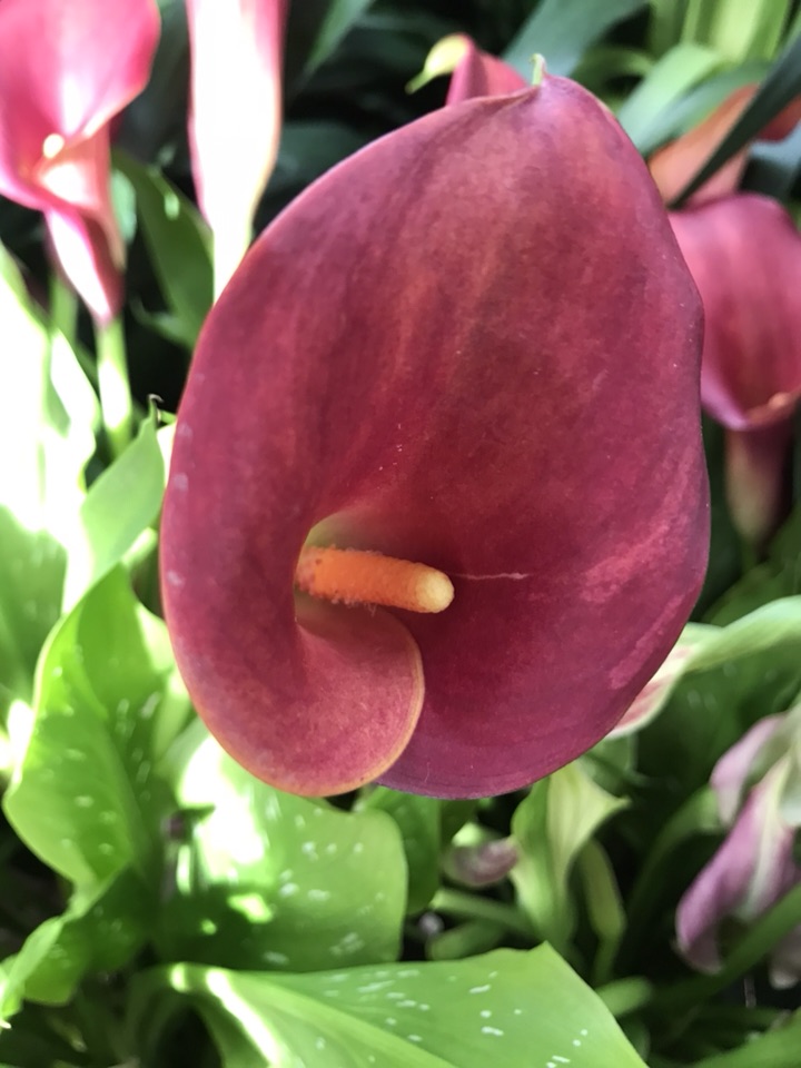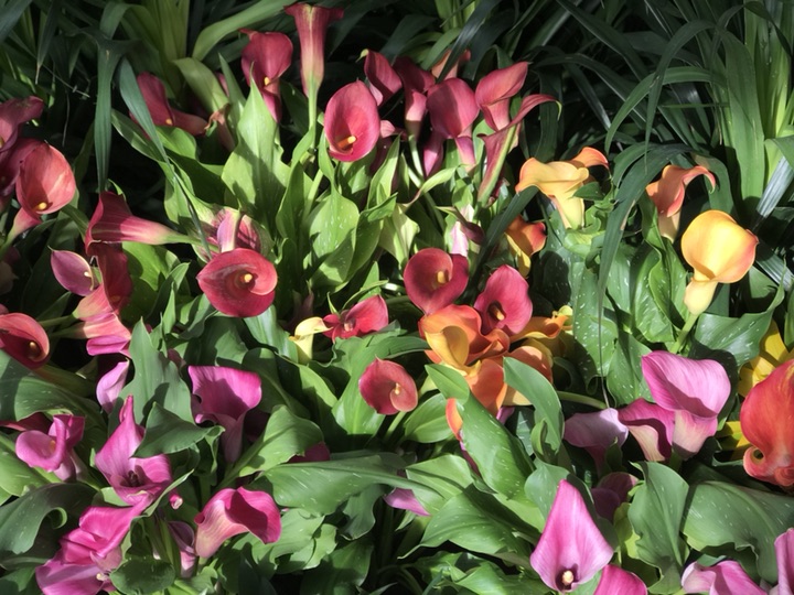 彩色马蹄莲(学名:Zantedeschia hybrida Spr.)天南星科,马蹄莲属中除白花马蹄莲外其它种及杂交品种的统称。原产非洲中南部,别称彩色海芋。