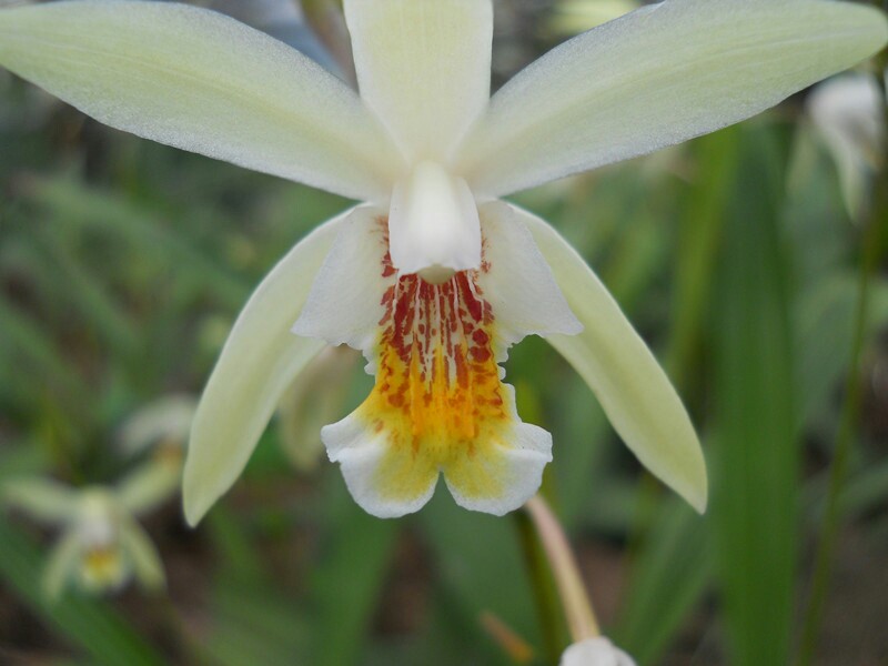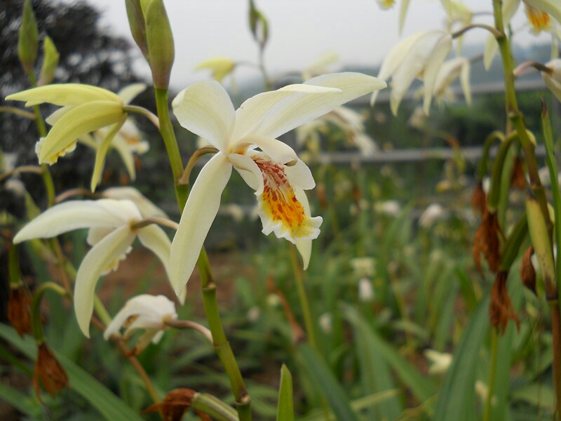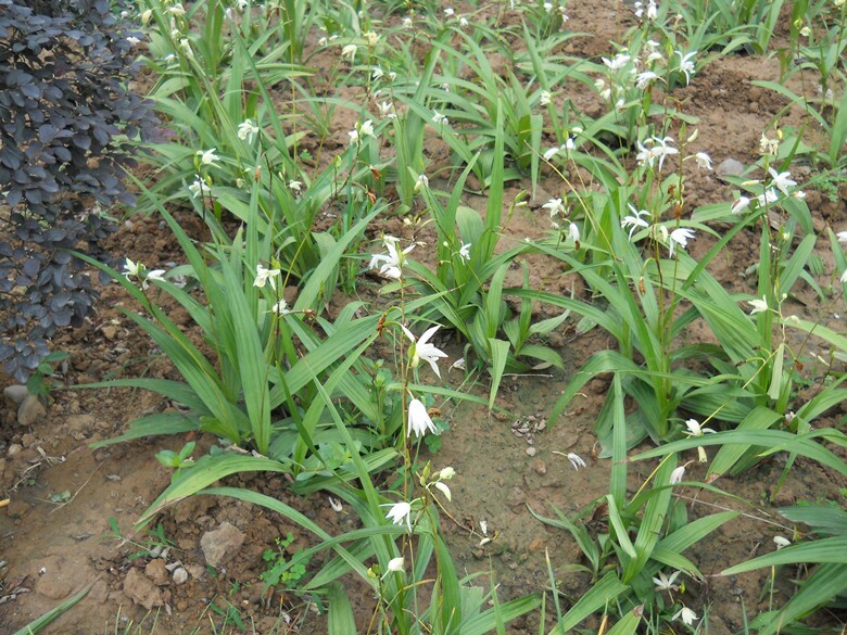 这种开黄白花的白及野外已少见,仅见种养。