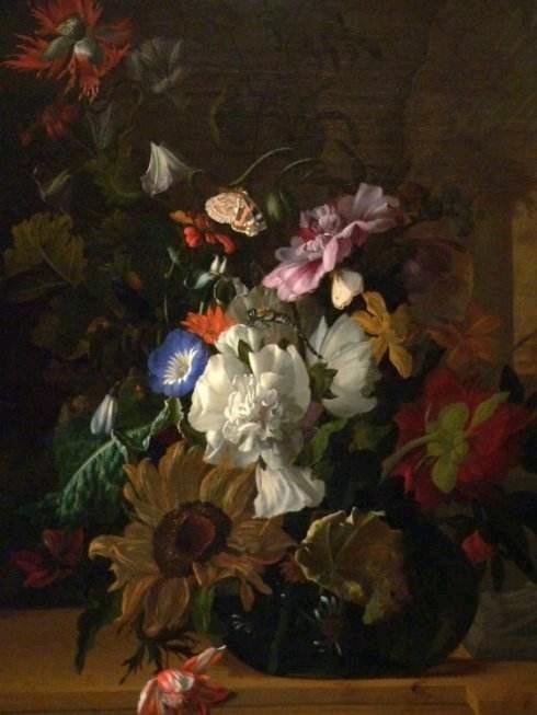 今天😊😊,这一幅植物画还是荷兰🇧🇬🇧🇬文艺复兴非常著名的女画家勒伊斯画的,她画了好多好多的花儿:向日葵🌻,欧月,旋花,黄水仙,白菜,重瓣木槿,欧月,喇叭水仙,双蝴蝶(有两朵),康乃馨,白菜,菊花🌸(也有两朵美丽的红色的花)🌸。