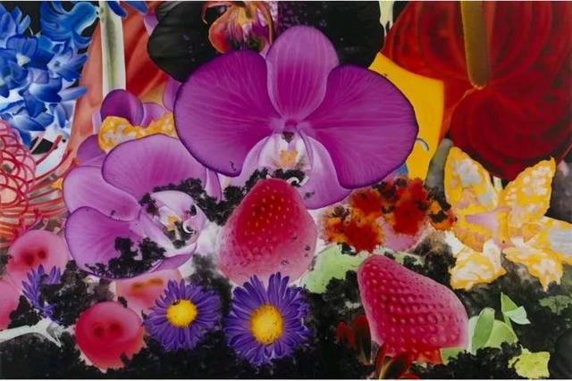 今天😊, 这一幅画是英国🇬🇧非常著名的画家马克.奎恩画的,他这一幅画里的植物非常丰富多彩,有草莓🍓,马兰花,紫菀花,花烛,蝴蝶兰,红花石蒜,蓝色的风信子,深紫色的补血草,可见,他这一幅画的所有植物都是非常丰富多彩的。