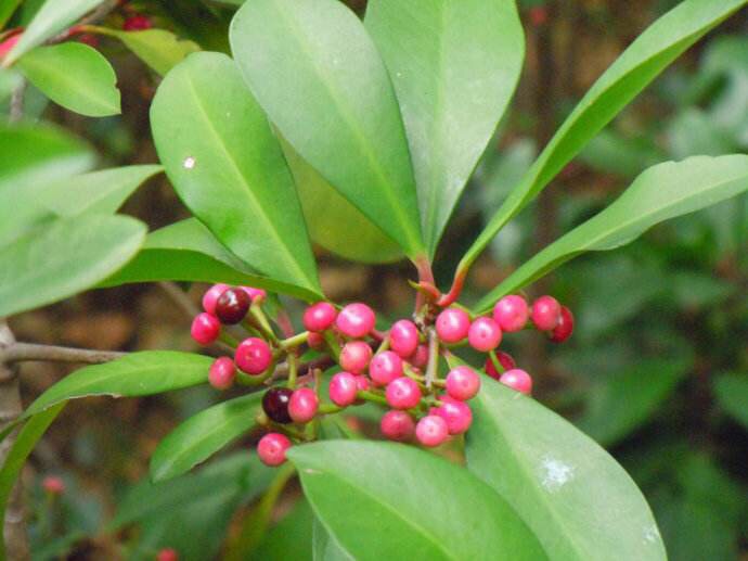 东方紫金牛-红果碧树粉花,三者都称佳话