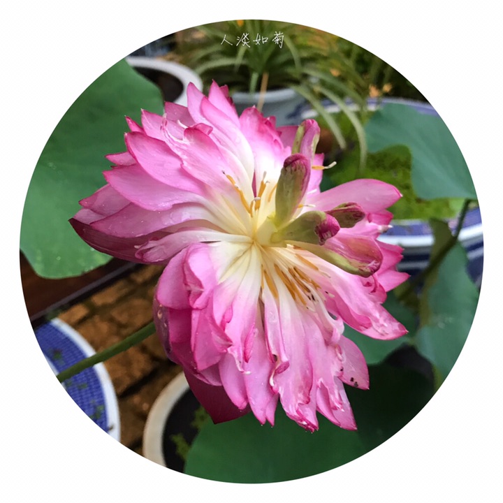 重台莲,是令人称奇的观赏荷名品,因花中长花而得名。在我国杭州、北京等地有少量栽培。地下茎圆长形;叶绿色,直径60 -70X 50-60厘米,梗高100厘米许;花蕾圆桃形,花初开粉红色,盛开时粉白色,多不结籽。单朵花期与重瓣荷花类似,可开10 -15天,花期较长。花瓣常逾百枚,有正常形态的花瓣,也有碎瓣。碎瓣是雄蕊和花瓣在外形上互相转变的证明,在花瓣和雄蕊之间存在着许多中间过渡类型。莲子(小坚果)可长出莲蓬,不久即可萌发出小花瓣,这可看作是雄蕊瓣化的变异。因此,重台莲常不能结籽。
