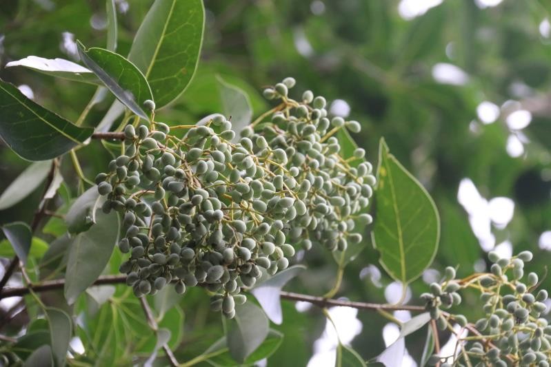 女贞树,常绿灌木或乔木,叶片常绿,革质,卵形、长卵形或椭圆形至宽椭圆形。圆锥花序顶生,花。果肾形或近肾形,深蓝黑色,成熟时呈红黑色,被白粉。花期5~7月,果期7月至翌年5月。成熟果实晒干为中药女贞子,性凉,味甘苦、可明目、乌发、补肝肾。