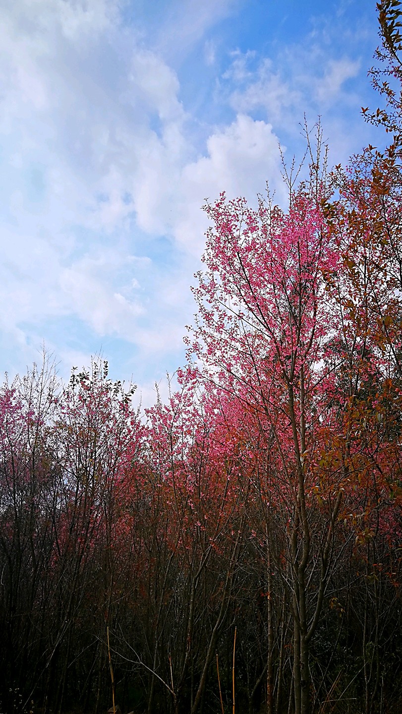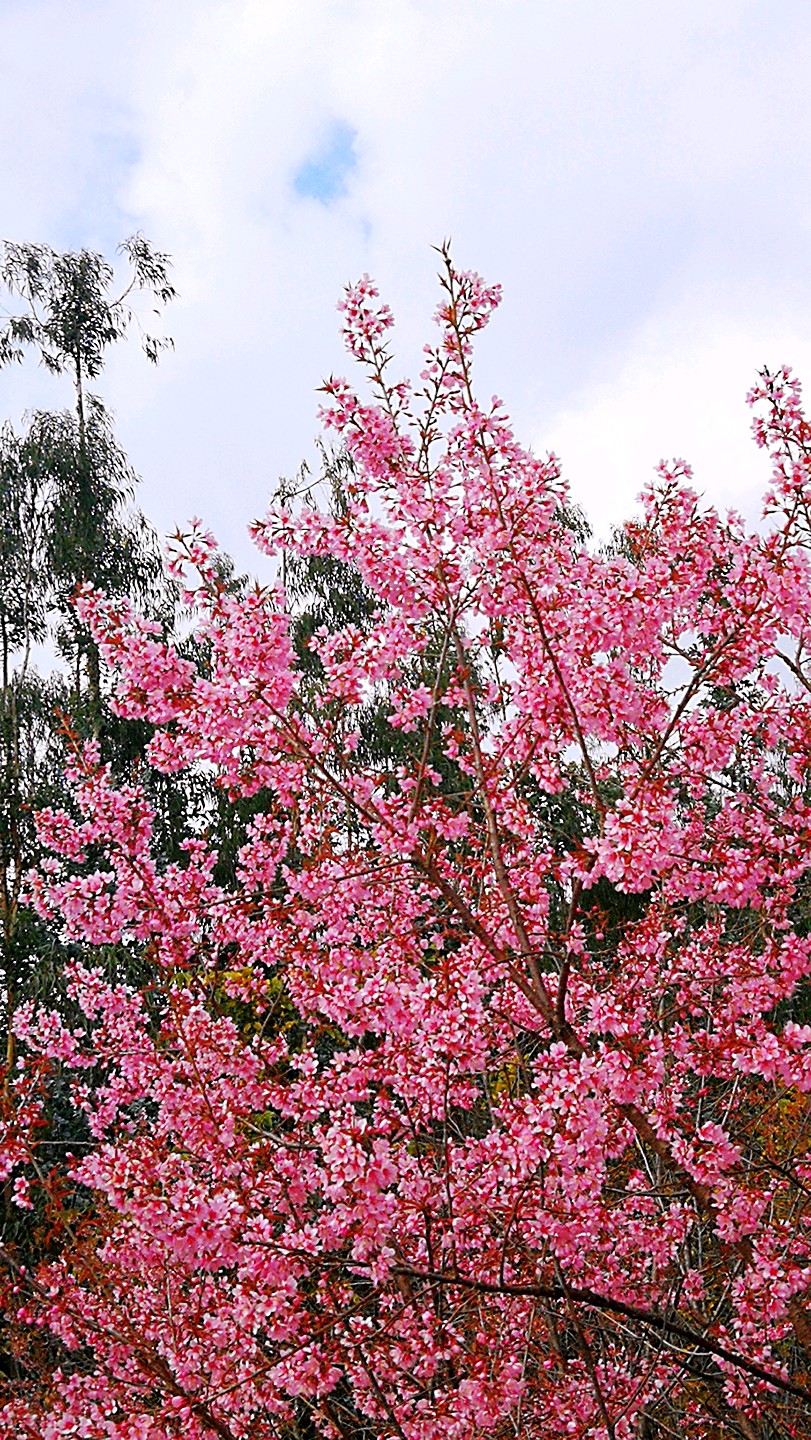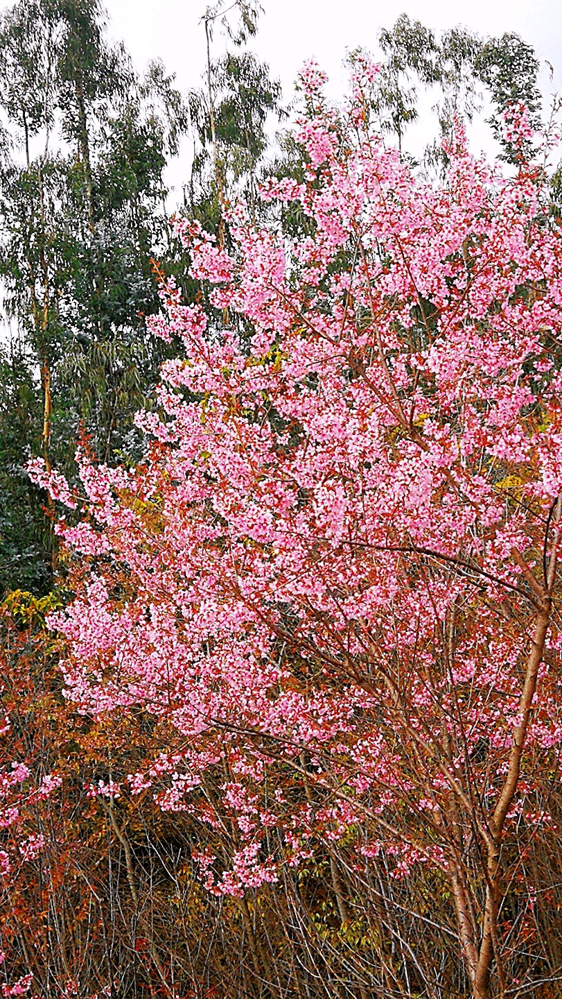 半山腰上盛开的高盆樱花