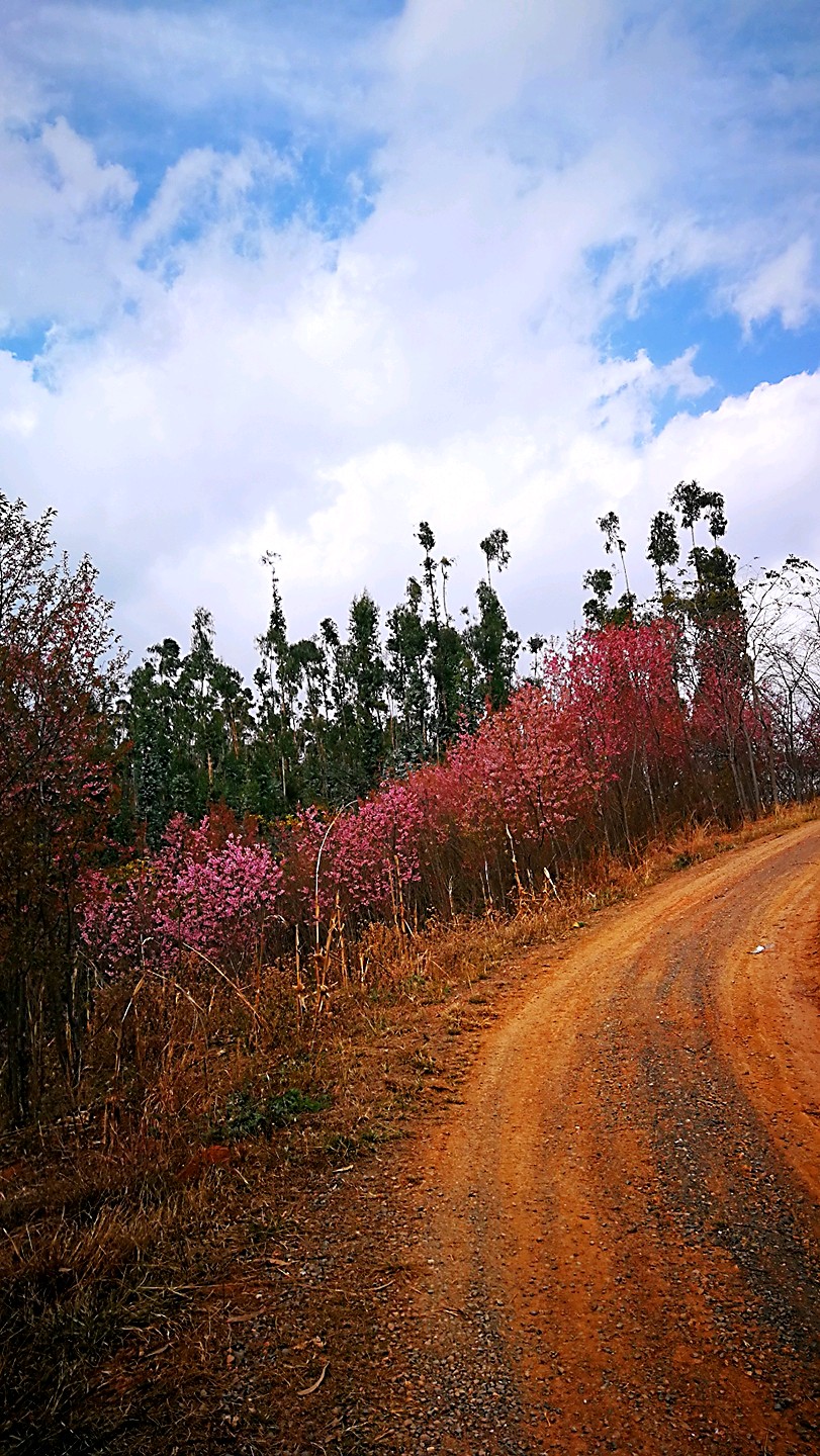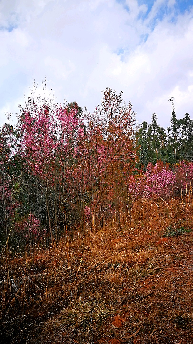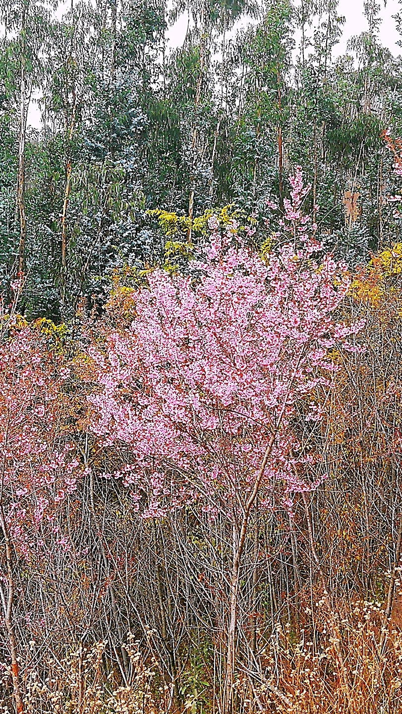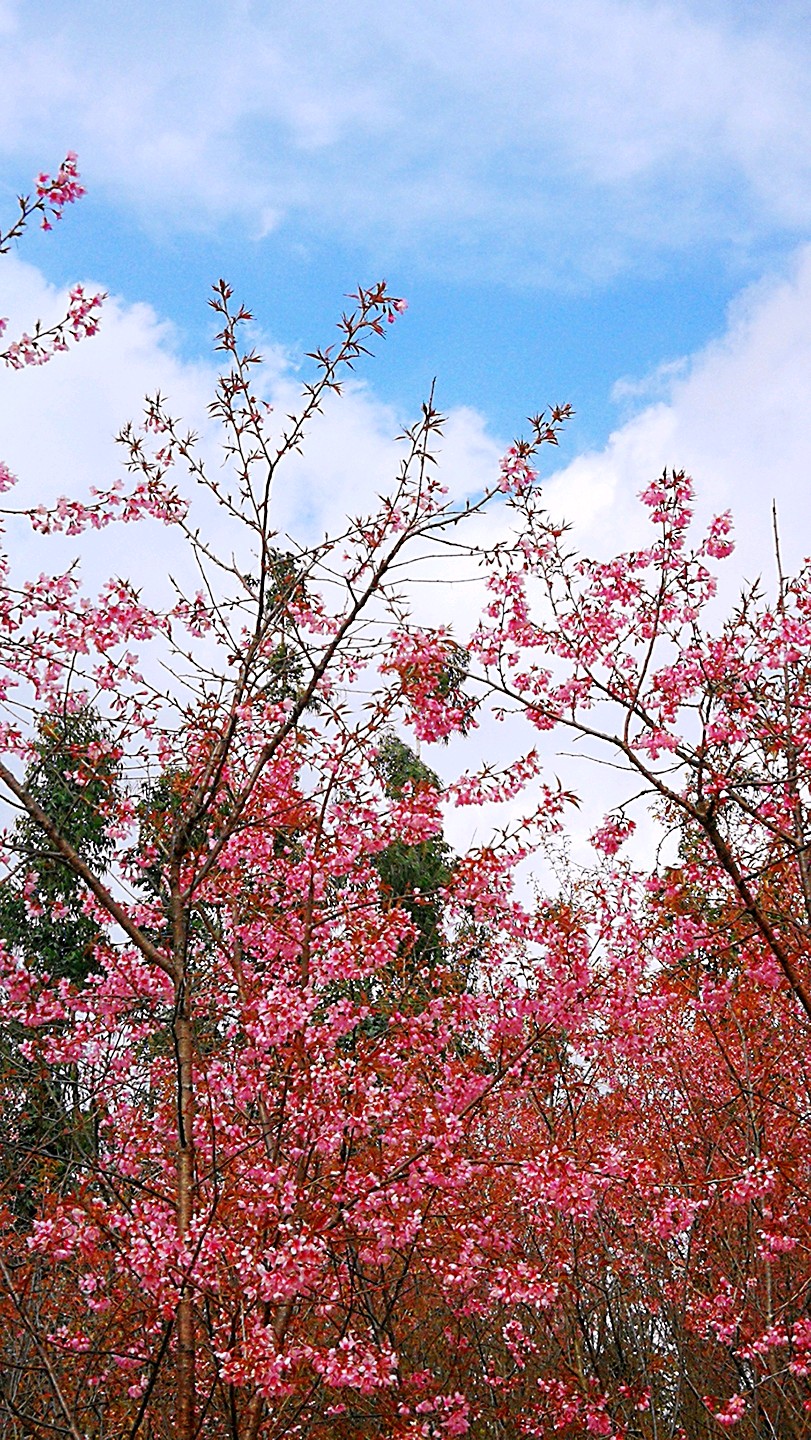 半山腰上盛开的高盆樱花