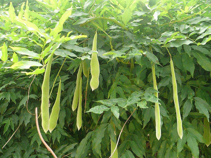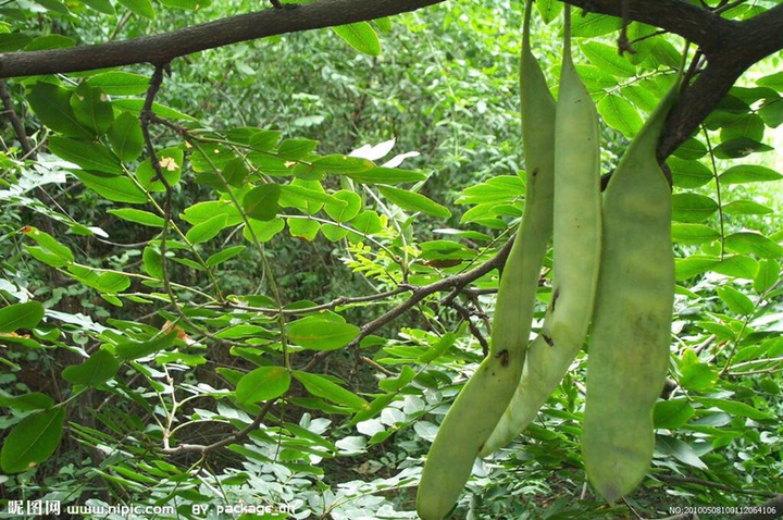 皂荚-皂荚树荫黄草屋,隔篱犬吠窥人过