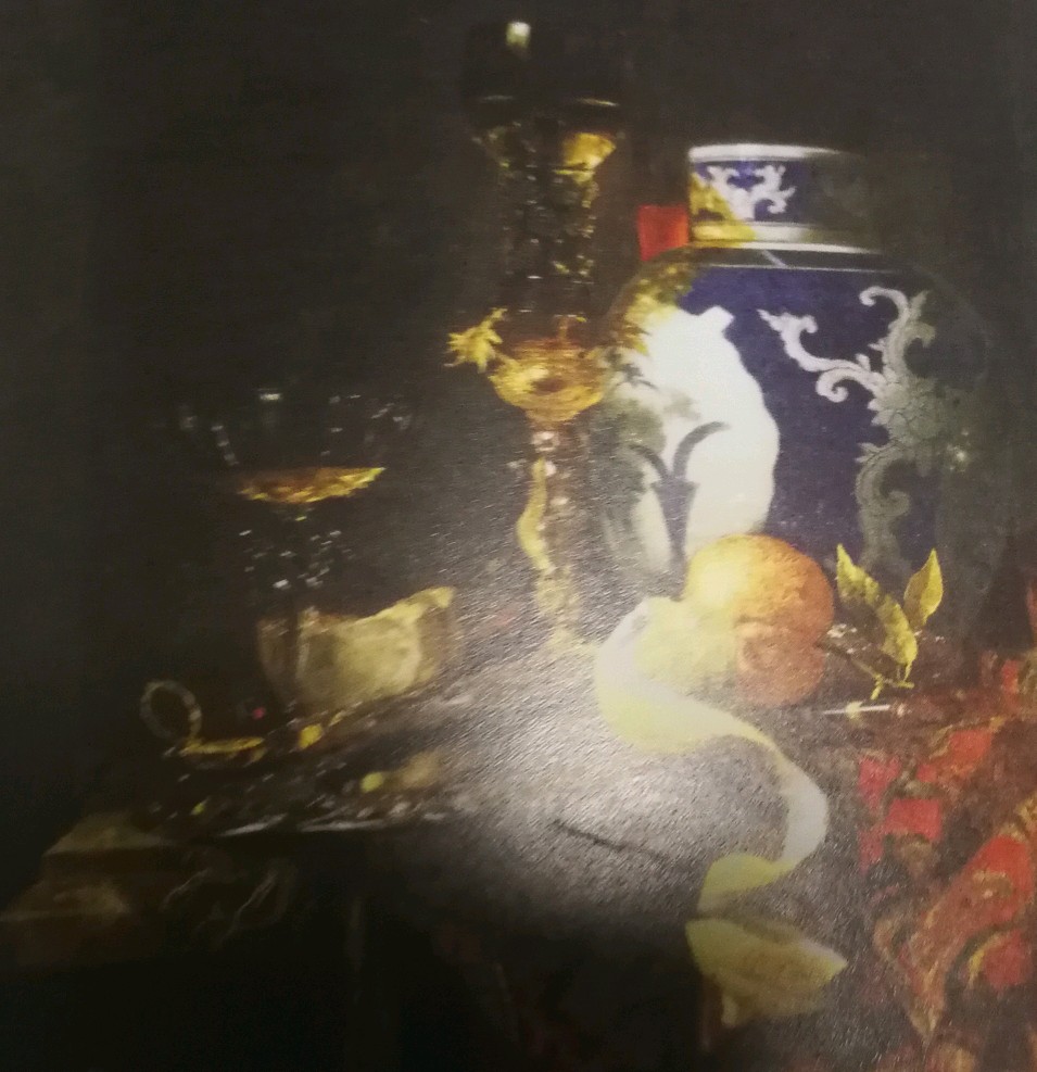 大家好😊,今天😊,这一幅画是荷兰静物画著名画家威廉卡尔夫画的,他这一幅静物画有地中海桃子,还有一个柠檬(剥了皮的那一个水果)。